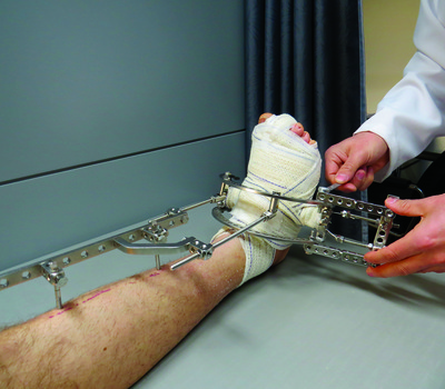Utilizado no caso de fraturas, infecções ósseas, articulares e de pele, além de corrigir deformidades ósseas e, principalmente, evitar a perda do membro