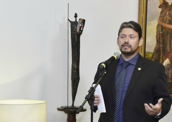 A presidente da Assembleia Legislativa, deputada Silvana Covatti (PP), deu posse, na manhã desta quarta-feira (28), na Sala da Presidência, ao suplente da bancada do PSD, Eduardo Oliveira, em cumprimento ao que determina o Regimento Interno e o Código de Ética Parlamentar, diante da cassação do deputado Mário Jardel. A cerimônia de juramento reuniu o vice-governador, José Paulo Cairoli, representantes do governo, deputados e agentes públicos da Fronteira Oeste. Edu Oliveira é natural de Santana do Livramento.
