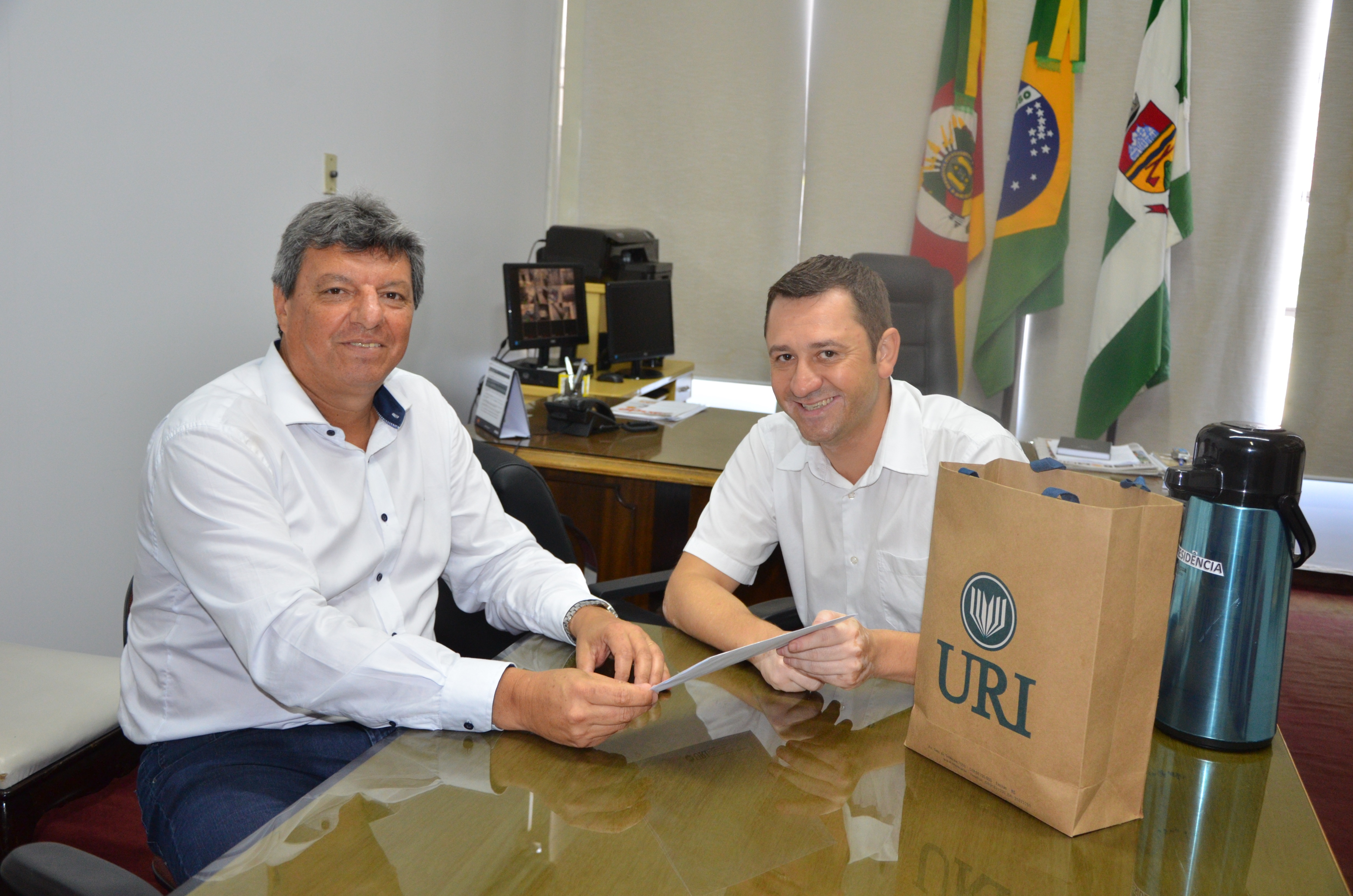 Tendo como local a sala da presidência, o presidente do poder Legislativo, vereador Alessandro Dal Zotto recebeu a visita do reitor da Universidade Regional Integrada, Luiz Mário Silveira Spinelli. No encontro as duas lideranças pontuaram diversos assuntos ligados à política e a educação e firmaram a continuidade de uma parceria entre a Câmara de Vereadores e a universidade regional