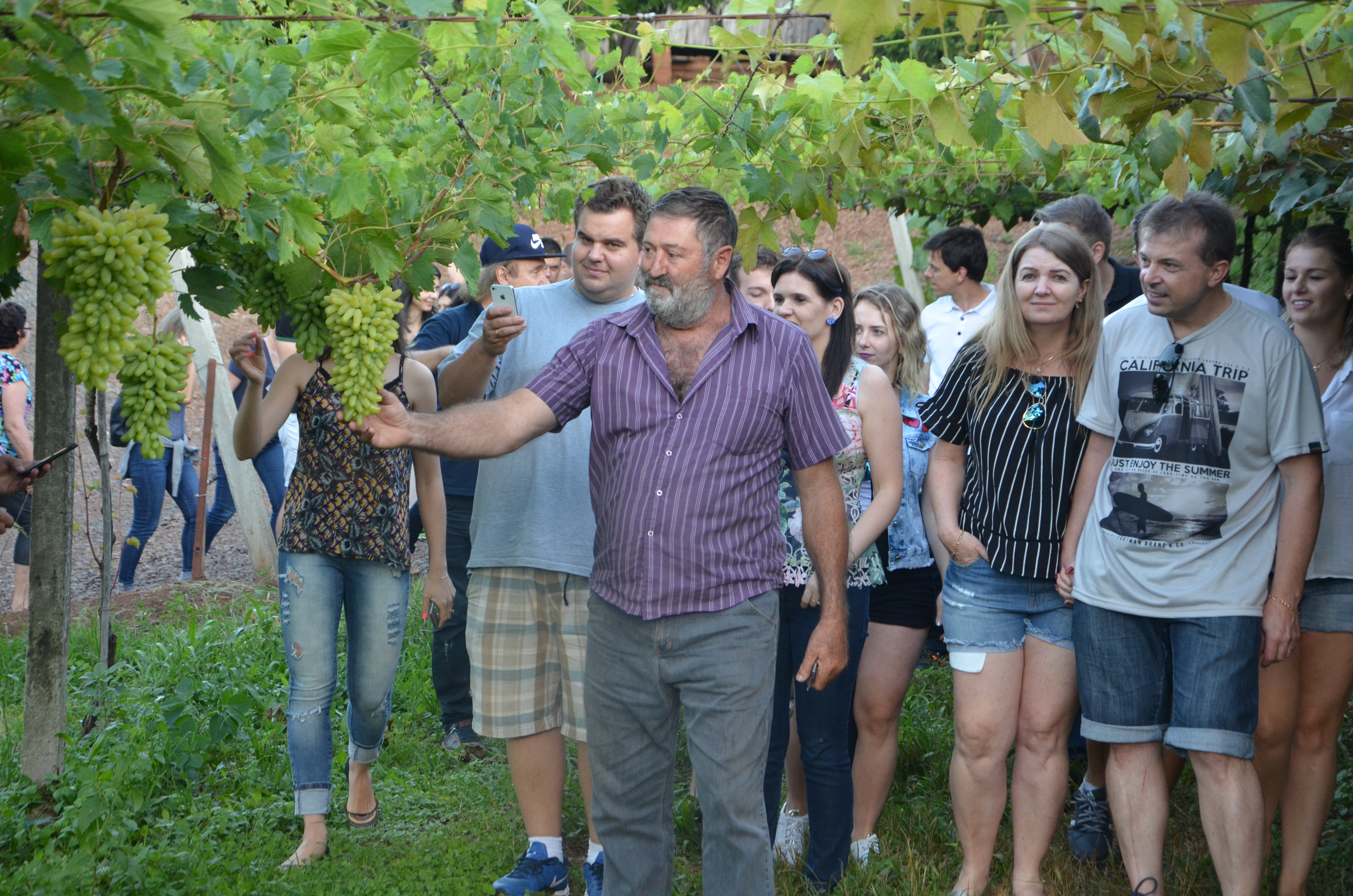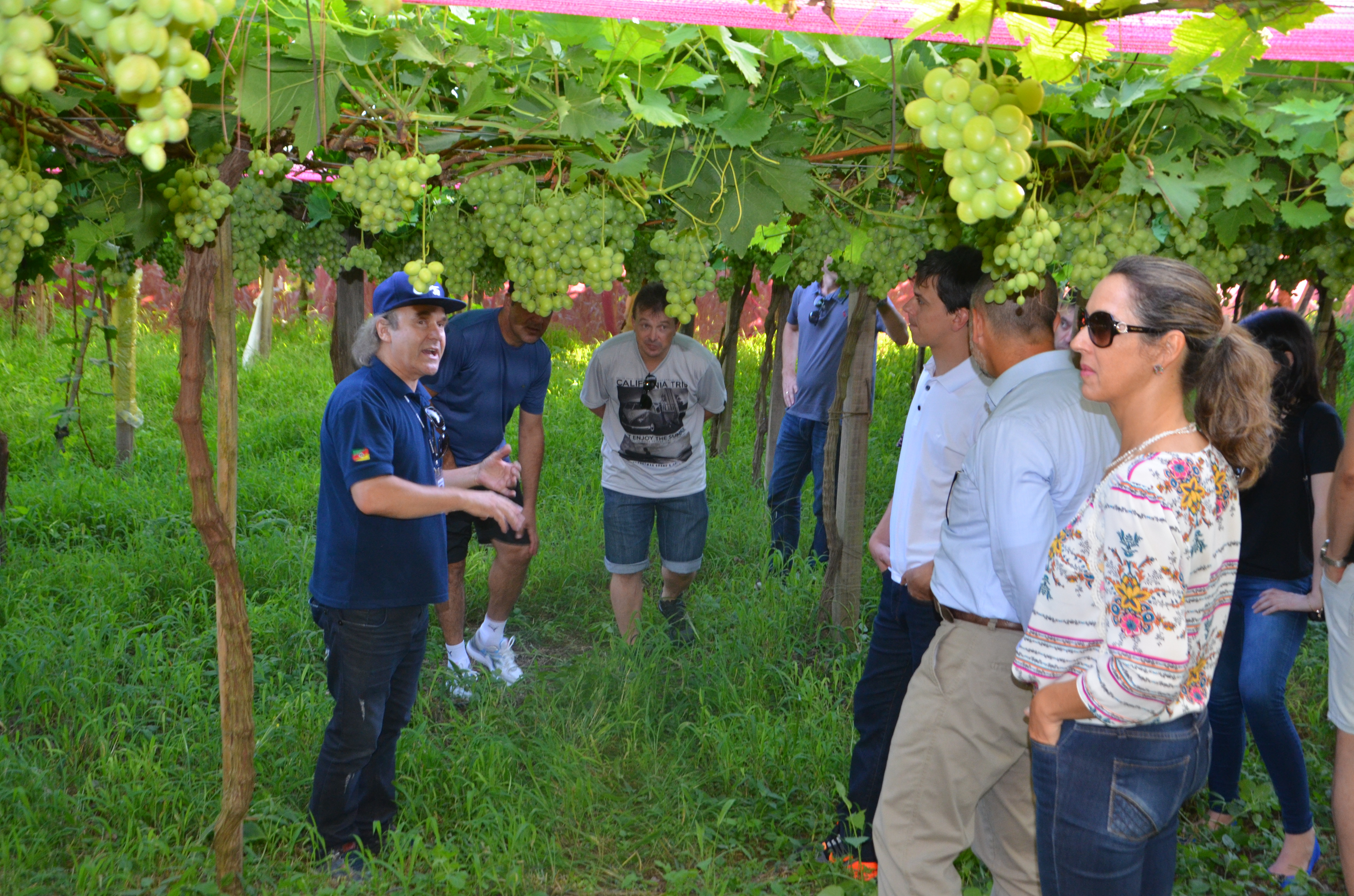 Guiados pelo técnico da Emater e responsável pelo turismo na Festa di Bacco, Walmor Gasparin, os participantes passaram pela propriedade da família Battistela, na qual conheceram a produção de uvas de mesa e o processo de fabricação de vinhos. Mais adiante, estiveram na propriedade da família Bianchi, onde puderam passear pelos parreirais e adquirir uvas.