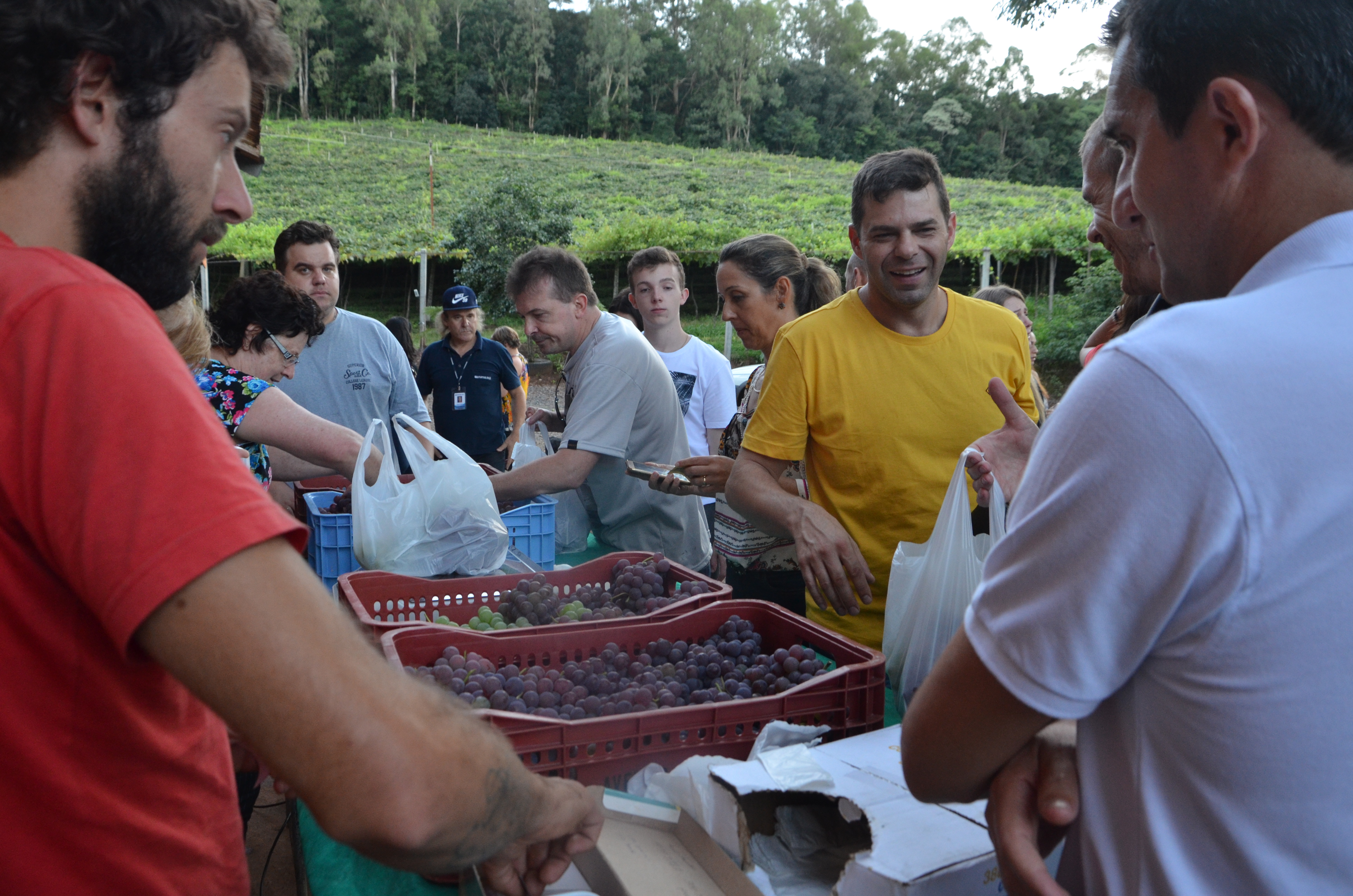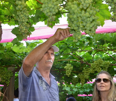 Espontâneo e divertido, conversou com o grupo relatando que quando ainda era bebê já vivia em meio aos parreirais. “Quando nasci, em vez de ganhar leite, minha mãe me deu vinho”, brincou o produtor, arrancando gargalhadas dos visitantes. Logo em seguida, todos foram convidados a se dirigir até o parreiral da família, onde puderam degustar as uvas produzidas e comercializadas pelos Bianchi. Gasparin salientou ainda o exemplo de sucessão rural da família, que tem no jovem Alex Bianchi a projeção de continuidade da produção de uvas. Antes ainda do pôr do sol, o grupo seguiu o caminho com destino a próxima parada.