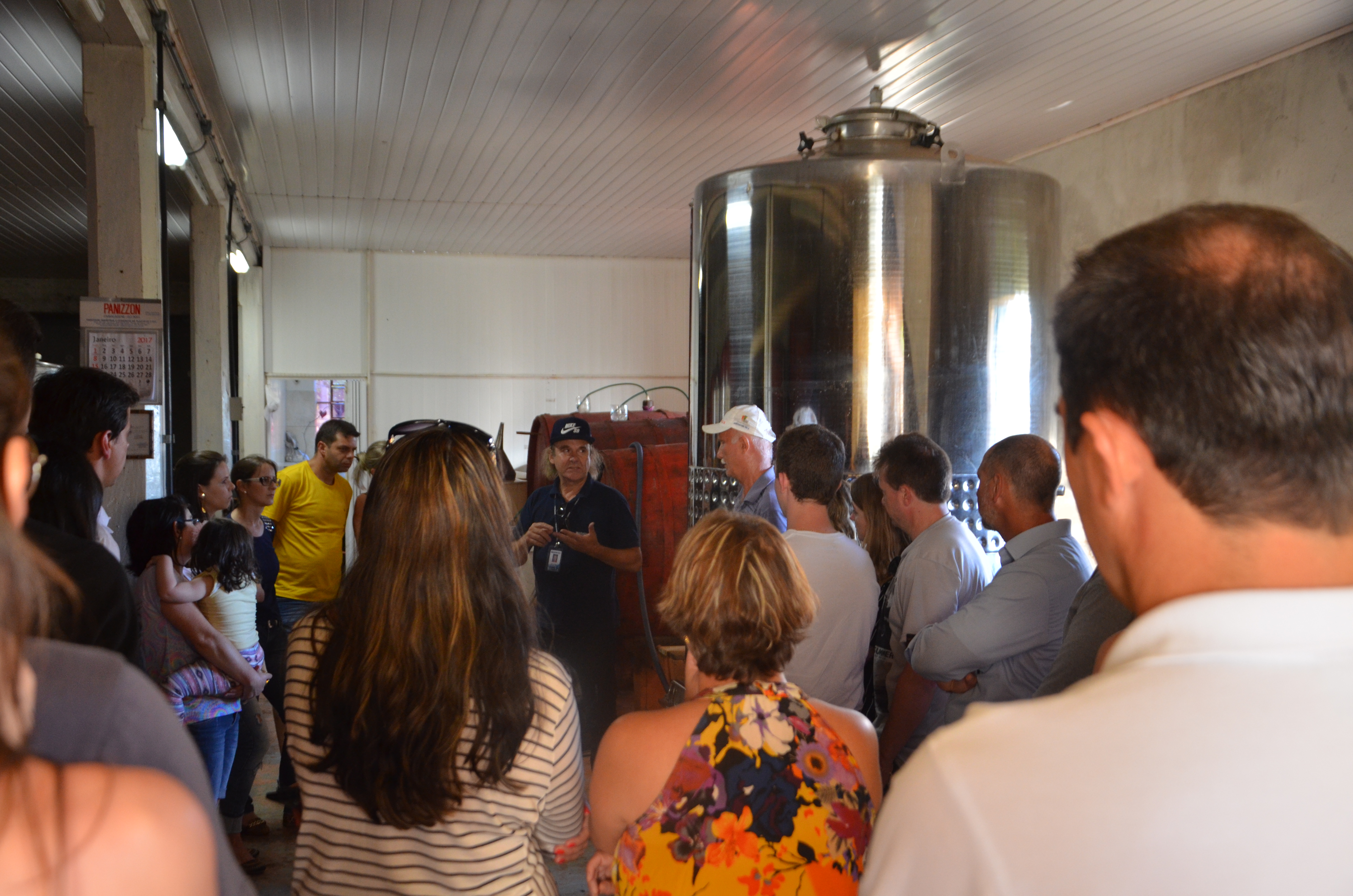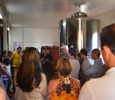 Quem recebe os visitantes é o patriarca da família, Olinto Batistela, rodeado pelos animais de estimação da família. A timidez do produtor se mistura à sua simplicidade e simpatia, e vai diminuindo na medida em que ele começa explicar o processo de fabricação do vinho, na cantina lotada de pipas, instalada abaixo de sua residência. Após ouvirem atentamente as explicações do anfitrião e de Gasparin, os participantes são convidados a ir até o parreiral, do lado da casa para conhecer a produção de uvas de mesa e acompanhar as explicações sobre o produto e suas características. O sol ainda está alto quando os visitantes deixam o local para se dirigirem até a próxima parada do roteiro.