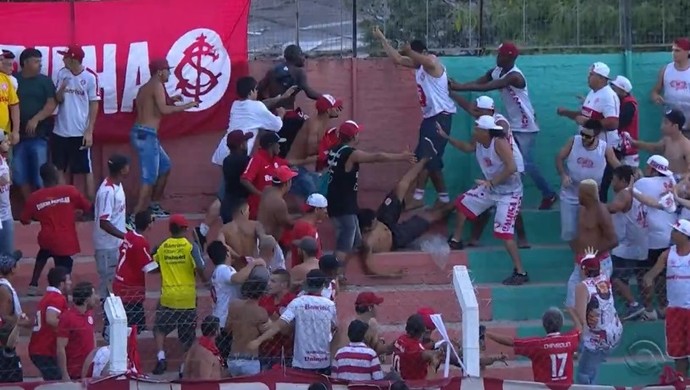 Na ocasião, a briga nas arquibancadas do estádio fez com que a Brigada Militar intervisse, e o jogo chegou a ser paralisado por quase 20 minutos. Jogadores do Inter, como o lateral Ceará e o meia D'Alessandro, chegaram a conversar com os brigões, pedindo calma e explicando que o clube poderia ser prejudicado, mas de nada adiantou.
