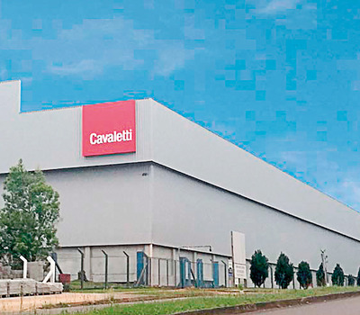 A área térrea de estocagem já está em pleno funcionamento e abriga matéria-prima e produtos prontos que serão expeditos para clientes, já o subsolo está em fase de conclusão, e no próximo mês entra- rá em funcionamento. A fachada deste novo pavilhão reflete a nova fase da Cavaletti, mais tecnológica e moderna.
