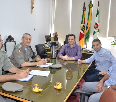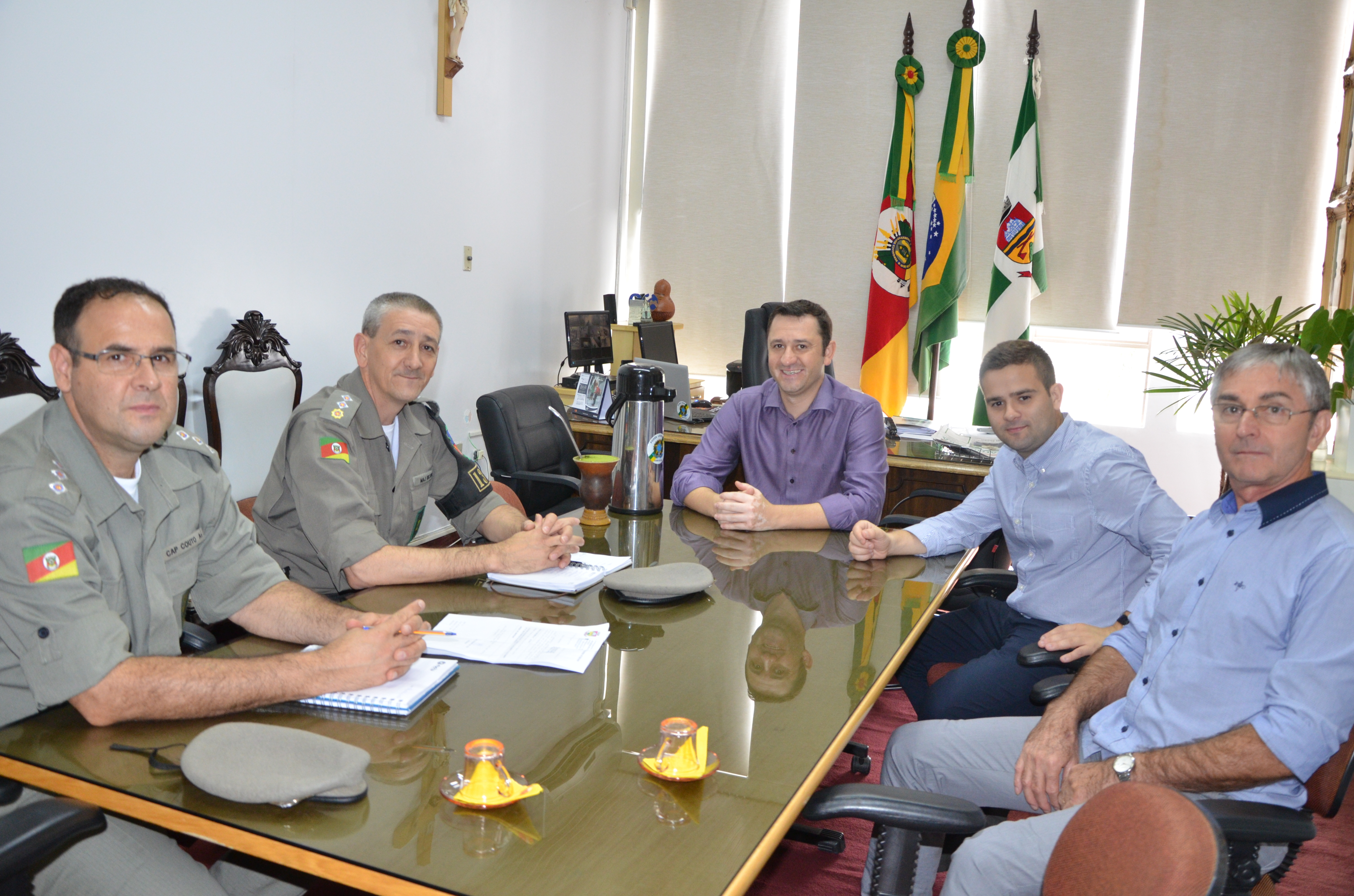 O presidente do poder Legislativo, Ale Dal Zotto (PSB) e os vereadores Renan Soccol (PSDB), líder do governo na câmara municipal e Gilson Serafin (PSD), receberam nesta semana, na sala da presidência, o Major Uilson Leri Cecconello e o capitão Adair Couto Gonçalves do 13º BPM, oportunidade em que responderam a solicitação aprovada no plenário da casa quanto a possibilidade do aumento de contingente de policiamento no município, a intensificação do patrulhamento nos altos da Maurício Cardoso, como pontuaram a necessidade de parcerias de várias entidades para um trabalho mais efetivo junto ao município.