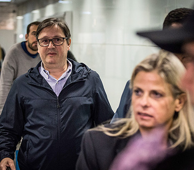 Loures foi o primeiro a desembarcar, com o auxílio da equipe da empresa aérea, de acordo com relatos de outros passageiros. Recebido com críticas por manifestantes que o esperavam desde o começo da manhã, ele foi o último a chegar à área de desembarque.