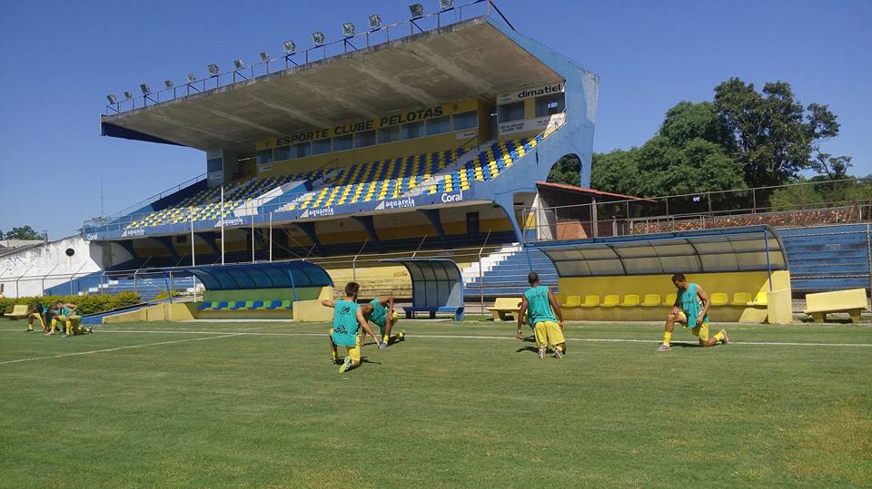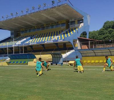 O grupo de Leocir Dall’Astra que está em Pelotas desde de ontem (9) para enfrentar nesta quarta-feira (10) o Brasil de Pelotas, pela terceira rodada do estadual as 20h30 no Estádio Bento Freitas. Fez nesta manhã (10) um treino de mobilidade no estádio do adversário do outro grande time da cidade o E.C Pelotas.