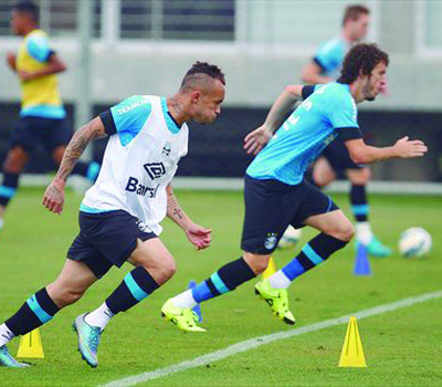Para o confronto em Santa Catarina, o Grêmio não terá o meia Douglas, suspenso pelo terceiro cartão amarelo. O goleiro Marcelo Grohe, que saiu ainda no primeiro tempo do jogo contra o Atlético-MG, não participou da atividade em campo de hoje e é dúvida para o confronto de domingo. O volante Maicon, em recuperação de lesão no tornozelo, fez suas primeiras atividades em campo, dando voltas ao redor do gramado conduzindo a bola.