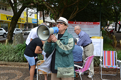 Movimento popular anticorrupção e pela moralidade na política coleta assinaturas no centro de Erechim. De acordo com Antonio Andriolli, um dos líderes do movimento, o objetivo é reunir mais de cinco mil nomes para endossar um projeto der lei que deverá ser apreciado pela Câmara de Vereadores.