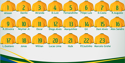 Veja a numeração oficial da Seleção Brasileira para os jogos contra Uruguai e Paraguai: