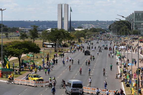 O professor Humberto Sandmann, 34 anos, chegou por volta de 11h acompanhado da mãe, Isabel Rodrigues, de 77 anos, e da namorada Monique Benedita Garcia, de 32 anos. Eles viajaram por 10 horas de carro de Limeira, em São Paulo, para Brasília. “A gente está aqui pela democracia, para pressionar [os deputados] mesmo", disse.