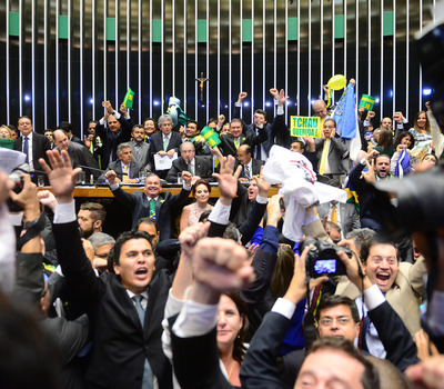 Depois de quase dez horas de debates, a Câmara dos Deputados concluiu no fim da noite de ontem (17) o processo de impeachment da presidenta Dilma Rousseff. Por 367 votos a favor, 137 contra e sete abstenções, os deputados aprovaram o parecer do deputado Jovair Arantes (PTB-GO), favorável à admissibilidade da denúncia apresentada à Casa pelos juristas Hélio Bicudo, Miguel Reale e Janaína Paschoal.