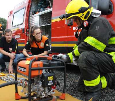 Já na parte da tarde, houve aula prática de segurança com o Corpo de Bombeiros. Voluntários tiveram noções de resgates em caso de acidente, maneiras corretas de uso de equipamentos obrigatórios como extintor de incêndio.