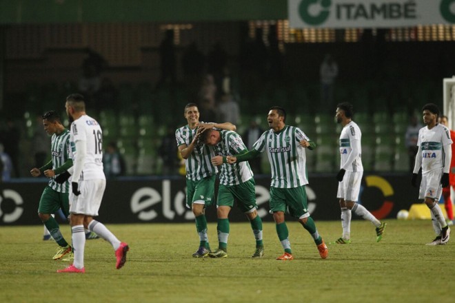 Sabendo que o adversário exerceria pressão no começo do jogo, o Juventude tratou de ter toda a atenção possível nos primeiros minutos. Apostando no contra-ataque, o Verdão chegou com perigo quando Felipe Lima invadiu a área e chutou cruzado, para defesa de Wilson, aos 3 minutos. Bem postada, a defesa alviverde ia segurando o ímpeto do Coritiba até o momento em que um pênalti marcado pelo árbitro Leandro Marinho mudou o panorama da partida, logo aos 8 minutos. O lance, duvidoso, ocorreu quando Gonzales caiu após saída do goleiro Douglas Silva. Na cobrança, Kleber converteu. 1 x 0.