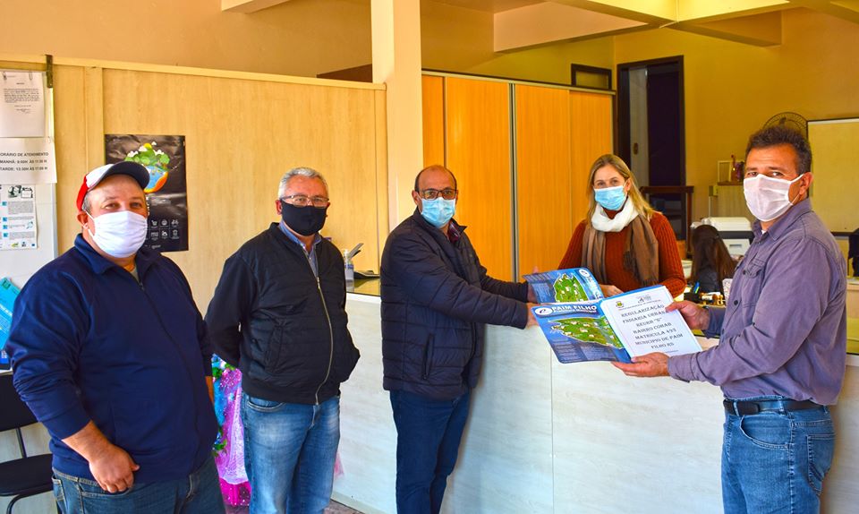 É com muita satisfação que a administração municipal informa a todos os moradores do Bairro Cohab de Paim Filho que, na quarta-feira (27), o prefeito, Ediomar Brezolin, juntamente com o vice-prefeito, Gilmar de Campos, o assessor de planejamento, Jorge Piovesan, e o representante da empresa E. Perin, Edgar Perin, protocolaram o processo de REURB – Regularização Fundiária Urbana – desse bairro junto ao cartório de registros públicos do município.