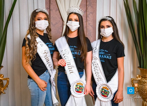 A rainha, Taísa Rebelato, 1ª princesa, Patrine Farias, e a 2ª princesa, Josiele Maschio. A corte tem o compromisso de representar o município e divulgar suas potencialidades