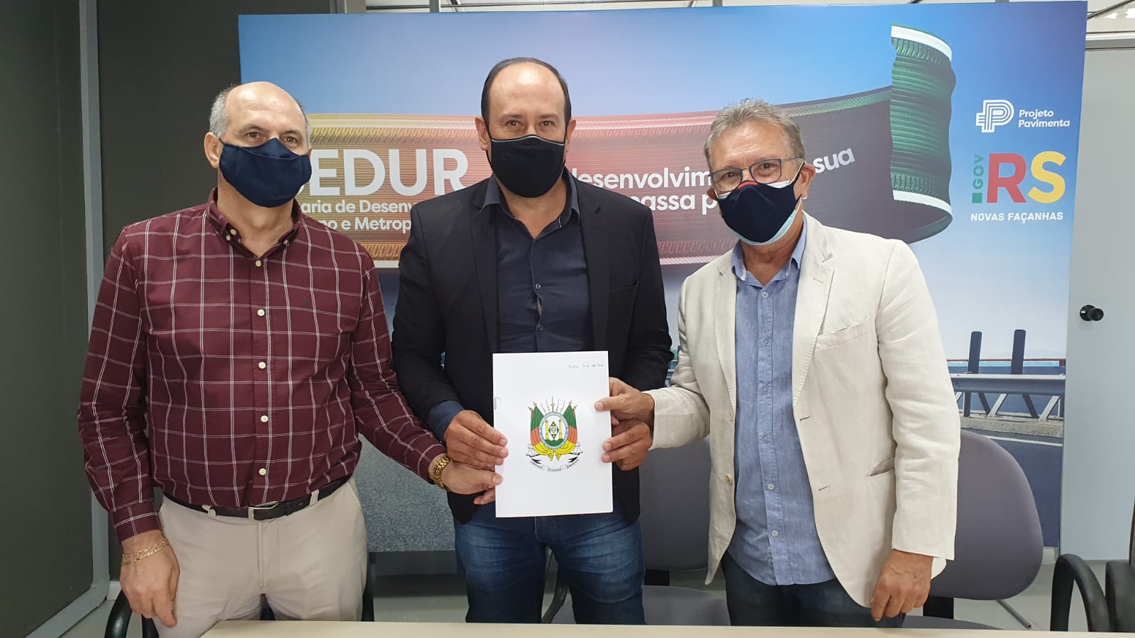O prefeito de Entre Rios do Sul, Jairo Paulo Leyter, esteve em Porto Alegre, para assinatura do convênio do Programa Pavimenta-RS, com a presença do deputado Dirceu Franciscon e do secretário Estadual de Obras, Luiz Carlos Busato, no último dia 13.