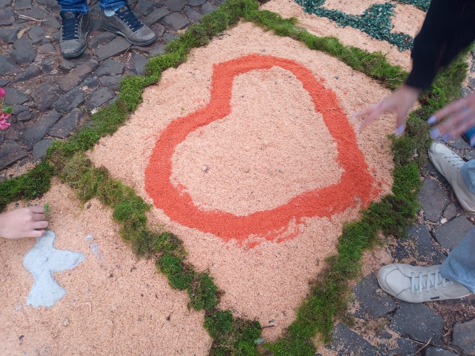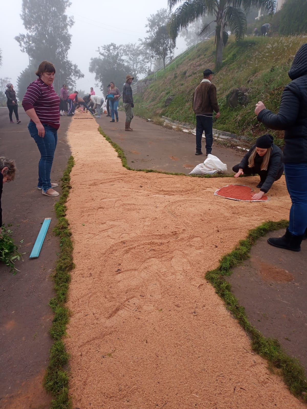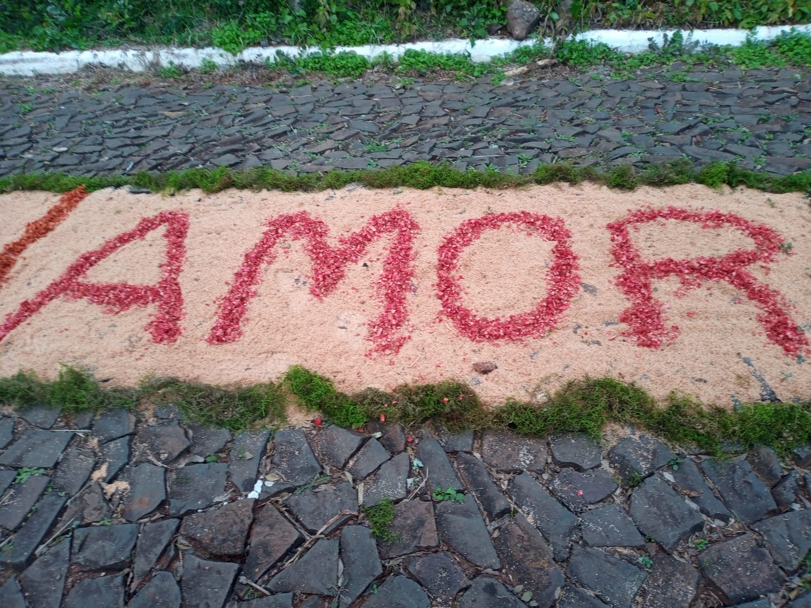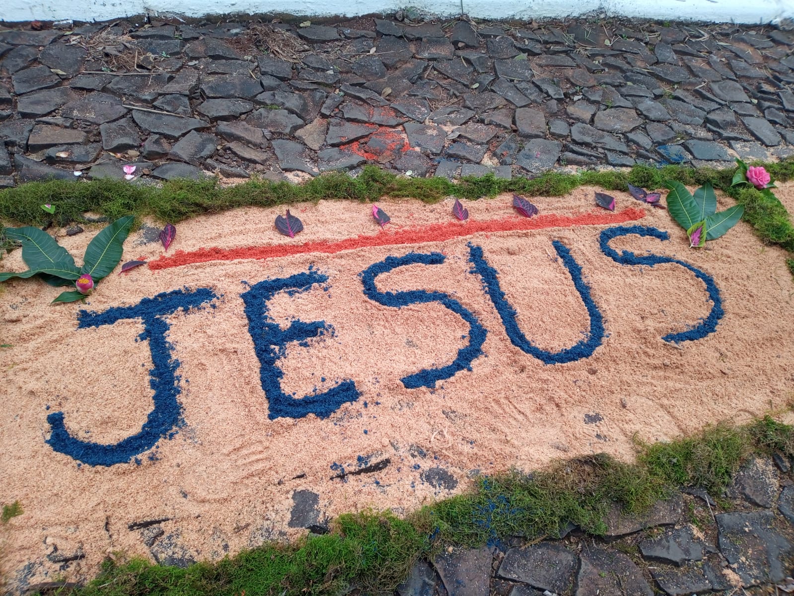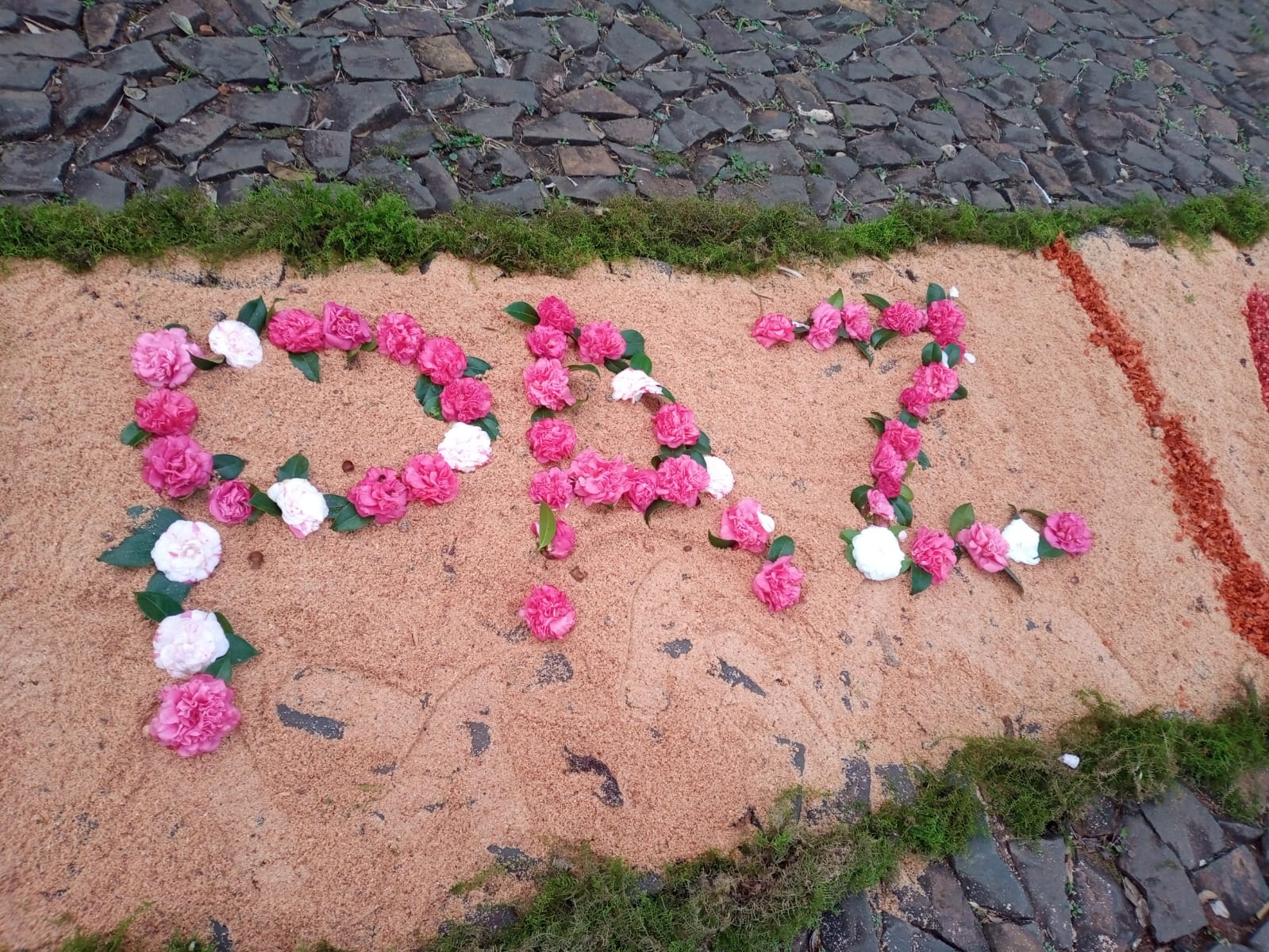 A Braspol, Diretoria da Matriz, catequistas e catequisandos, pais e a comunidade confeccionaram belos mosaicos, formando o tapete, onde o padre em procissão passou, seguido pelos ministros da eucaristia, equipe de liturgia e o povo.