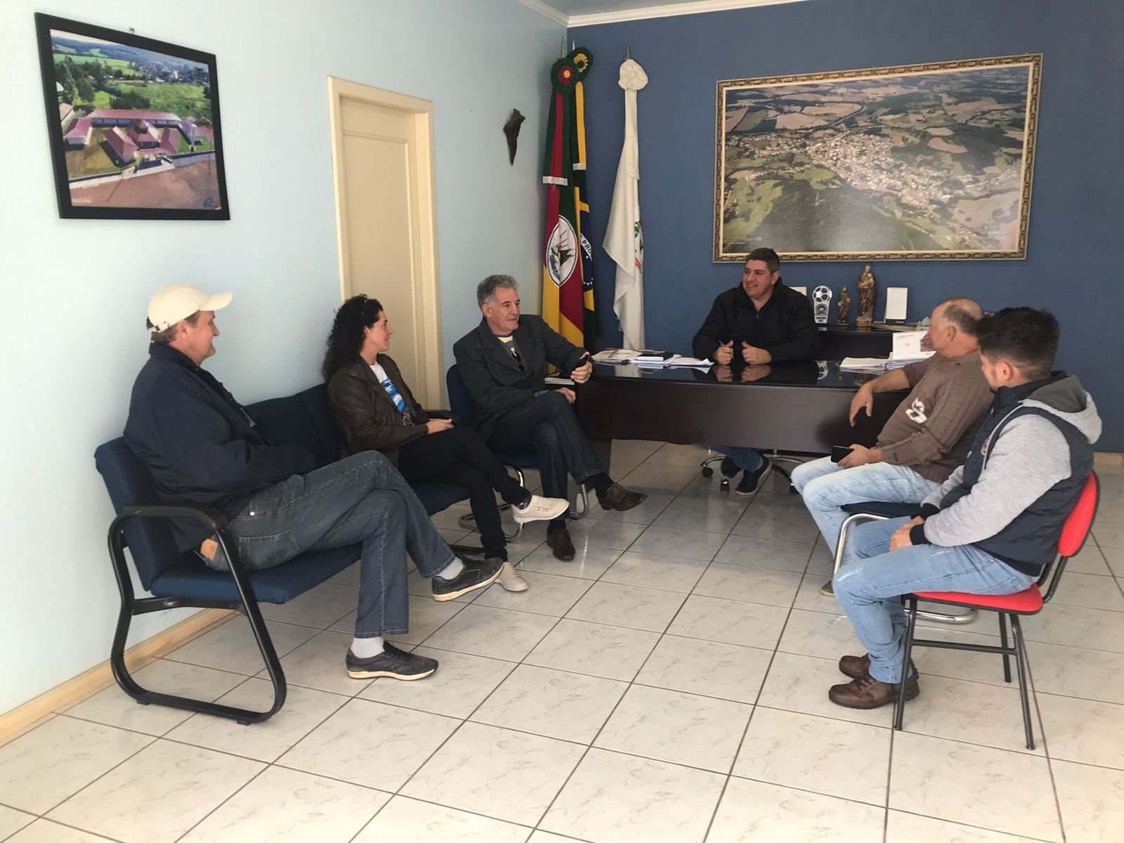 Na última semana, o prefeito Genes Ribeiro, o vice-prefeito Alberto Cervinski e o Assessor de Planejamento Oeliton Morais receberam, no gabinete, os vereadores Celso Lorenson, David Conte e Elaine Garbin, para tratar de uma demanda solicitada pelos moradores das comunidades de Santo Antônio e Auxiliadora.