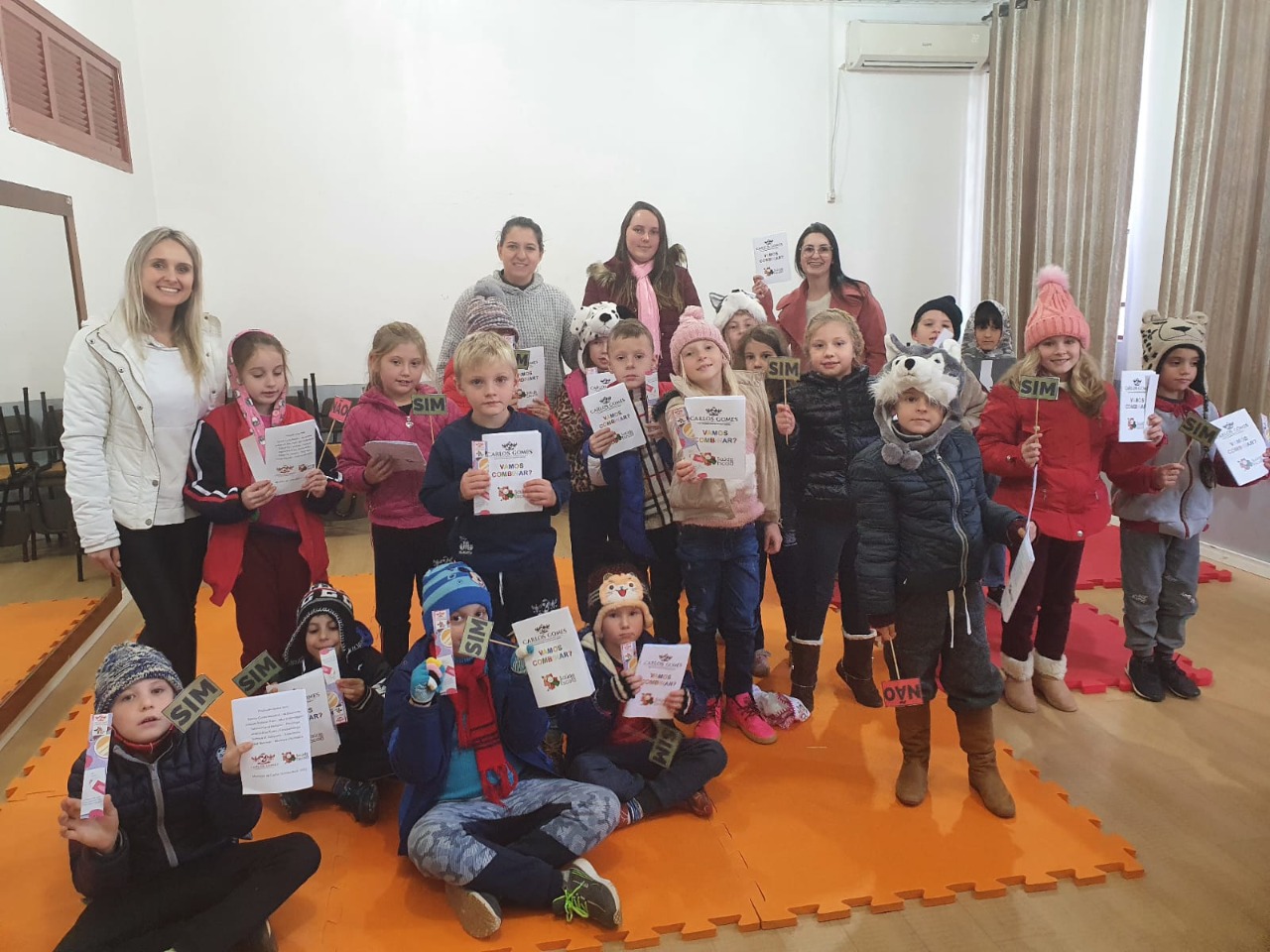 As atividades foram desenvolvidas por profissionais da Secretaria Municipal de Educação, Cultura, Desporto e Turismo e da Secretaria Municipal de Saúde: enfermeira Joseani Pichinin Paini; nutricionista Samila Conte Mezalira; psicóloga Tatiana Piana Bertoldo; fonoaudióloga Jéssica Ana Rustik.