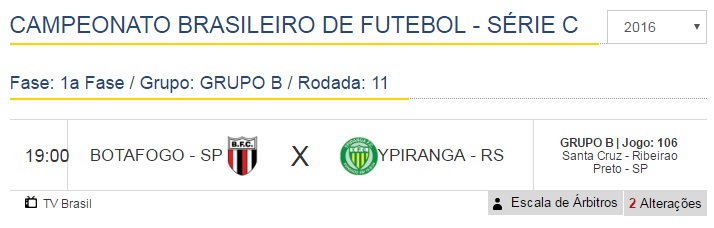 A partida entre Ypiranga x Botafogo (SP), será transmitida pela TV BRASIL, logo mais as 19h, em canal aberto para Erechim.
