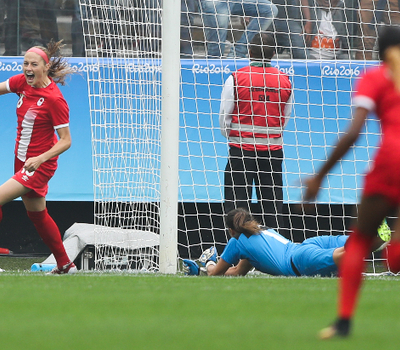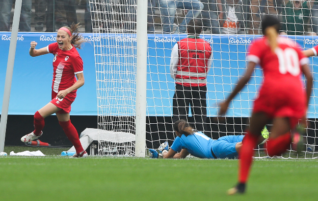 Na Arena Corinthians, em São Paulo (SP), o Canadá também estreou com vitória. Medalhista de bronze em Londres 2012, a equipe derrotou a Austrália por 2 a 0 e assumiu a liderança do Grupo F. As canadenses abriram o placar com o gol mais rápido da história do torneio feminino de futebol dos Jogos Olímpicos.
