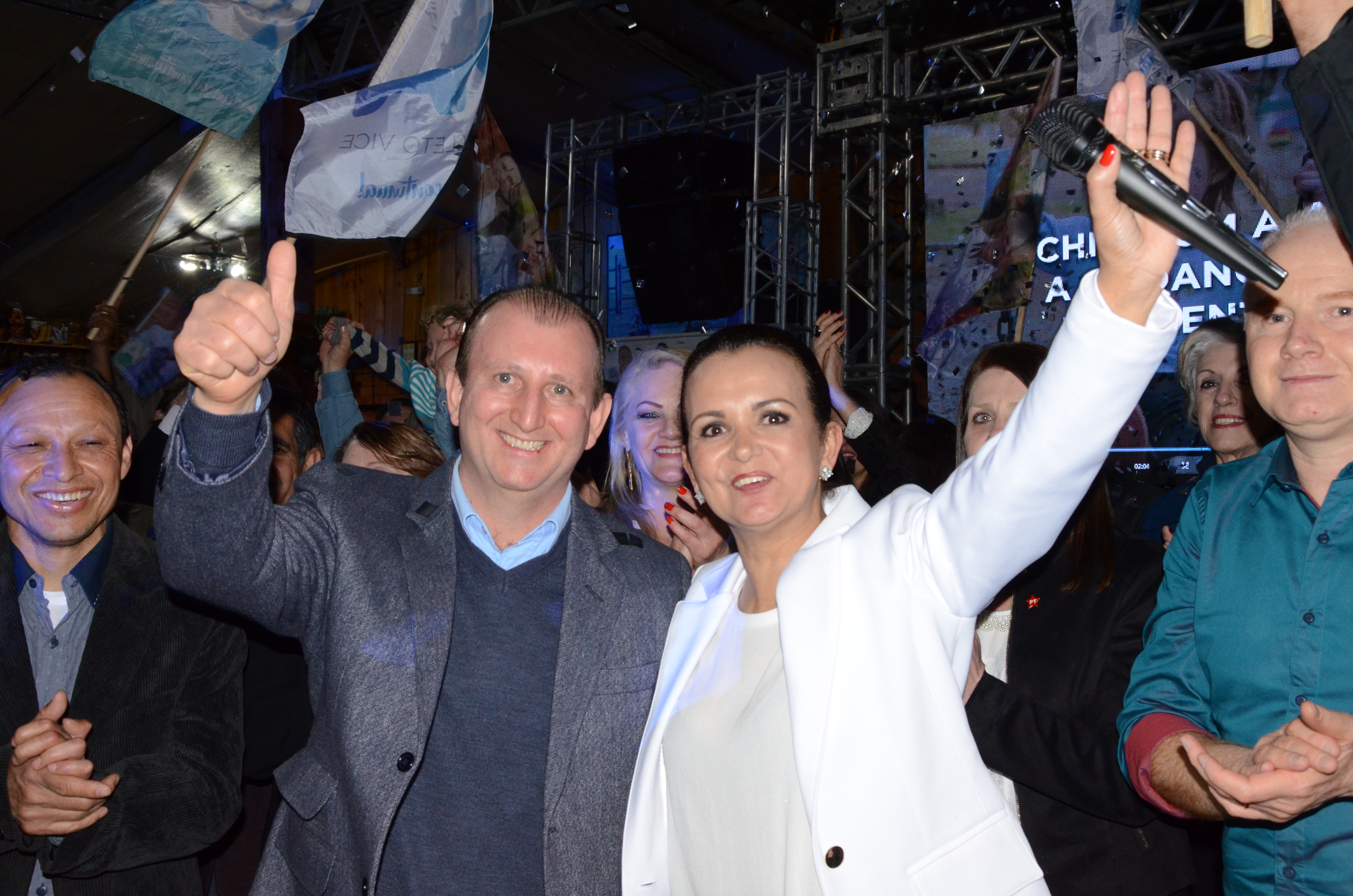 Mais de 1300 pessoas participaram do lançamento da campanha de Ana Oliveira e Anacleto Zanella. A dobradinha do PMDB e PT, apoiada pelo PCdoB, PSC, PV e PPS, vai disputar o comando da prefeitura de Erechim nas eleições do mês de outubro. A apresentação oficial dos candidatos ocorreu na noite desta quinta-feira (18) à noite em jantar festivo no CTG Galpão Campeiro e foi prestigiada por militantes e dirigentes dos seis partidos de situação, além dos deputados Gilberto Capoani (PMDB), Altemir Tortelli (PT) e Any Ortiz (PPS).