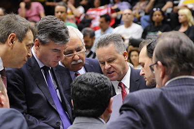 No início da sessão, ao ser colocado em votação o requerimento do governo do Estado 252/2015, que convocou extraordinariamente a Assembleia a partir desta segunda-feira, os deputados Luiz Fernando Mainardi (PT), Juliano Roso (PCdoB), Ênio Bacci (PDT), Jeferson Fernandes (PT), Pedro Ruas (PSol), Tarcísio Zimmermann (PT), Adão Villaverde (PT), Stela Farias (PT), Nelsinho Metalúrgico (PT), Zé Nunes (PT), Edegar Pretto (PT), Valdeci Oliveira (PT), Manuela D’Ávila (PCdoB), Miriam Marroni (PT) e Altemir Tortelli (PT) usaram da tribuna, para criticar o governo Sartori, segundo eles, pela falta de diálogo com a sociedade e com os servidores públicos, por entenderem que o governador deveria, ao invés de remeter projetos em regime de urgência, dar mais tempo para a discussão de algumas propostas no Legislativo, como a que trata dos transporte coletivo intermunicipal.