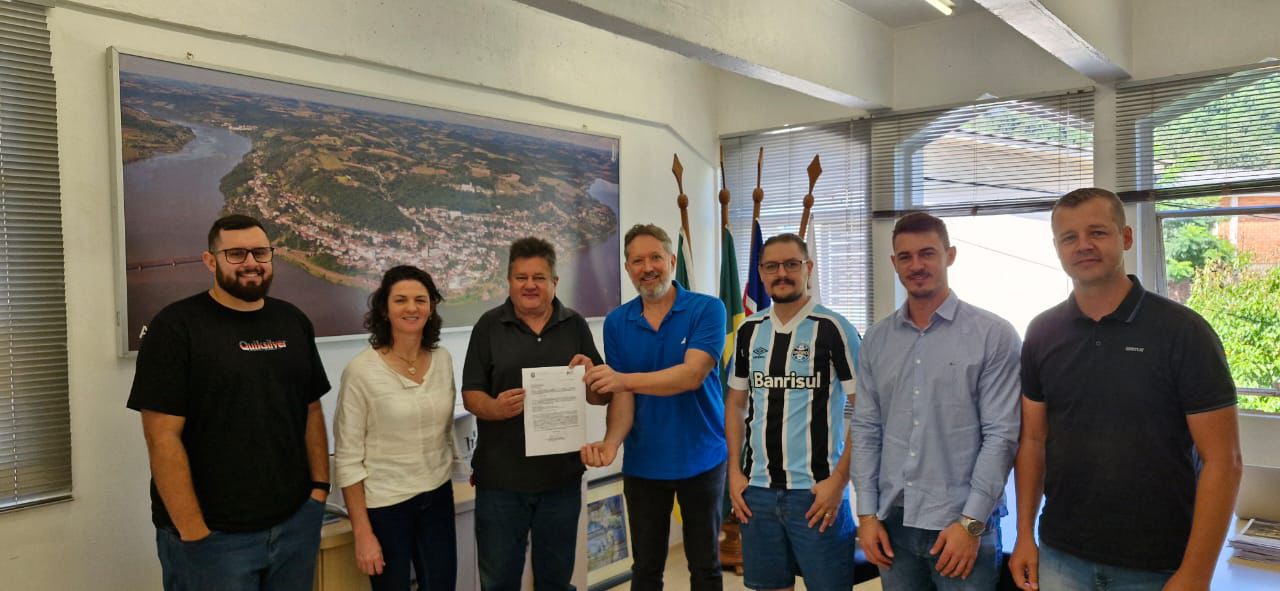 Na manhã desta quarta-feira (27), o prefeito, Vannei Mafissoni e representantes do Consulado Gremista receberam no Centro Administrativo, o chefe de Gabinete, João Grando e o secretário Parlamentar, Renan Giacomeli.