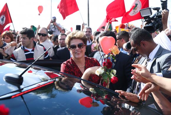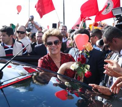 Quando Dilma passou, pétalas de rosas foram jogadas em sua direção. Após se despedir dos manifestantes, seguiu para a Base Aérea para embarcar em voo da FAB para Porto Alegre.