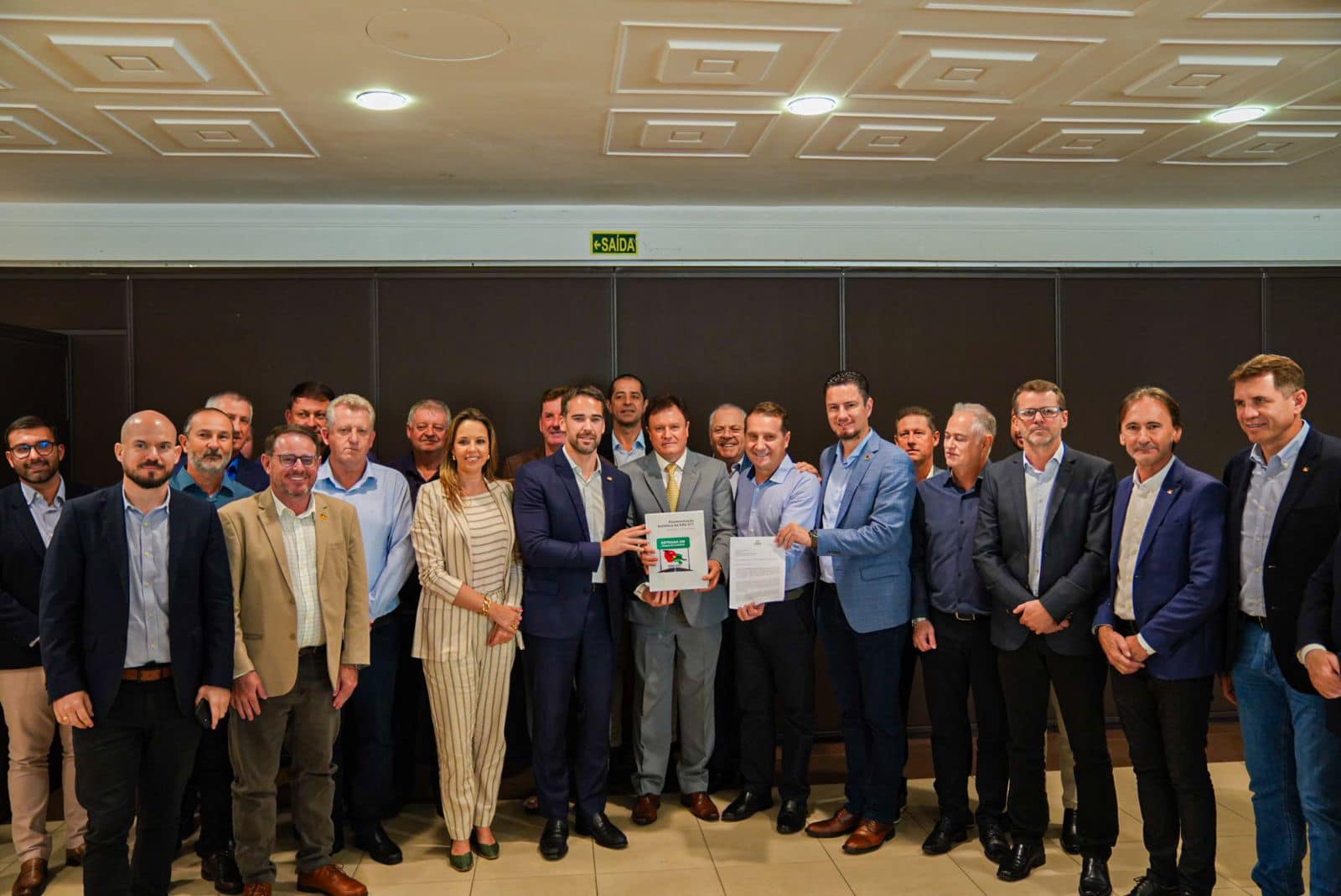 Na segunda-feira (21), o Prefeito Municipal Luiz Zelinski e o Vice-Prefeito Roberto Stodulski participaram de uma audiência com o Governador do Estado, Eduardo Leite, além de representantes do governo estadual, do presidente da Famurs, do presidente da AMAU e de outros prefeitos da nossa região.