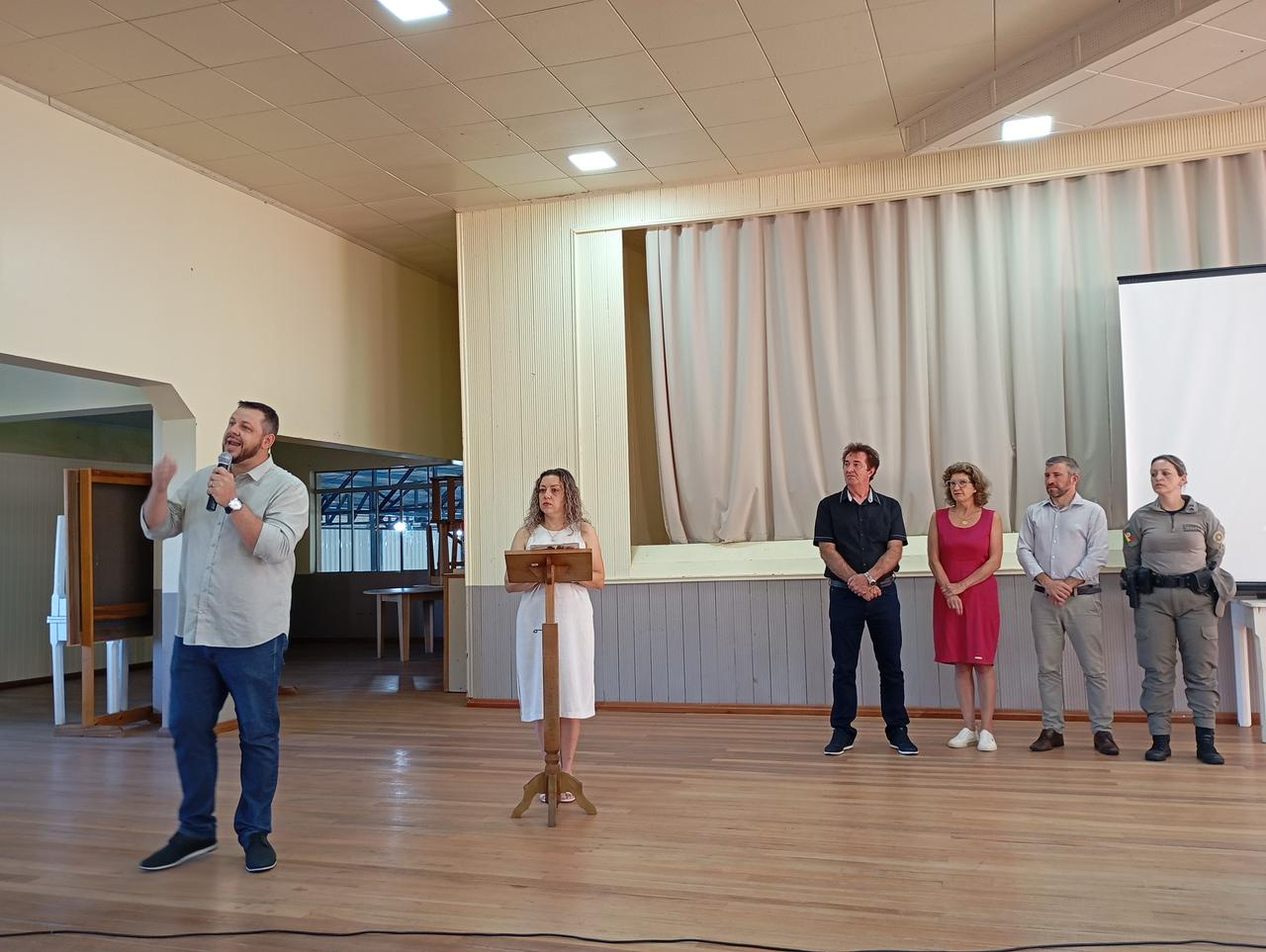 A secretária de Educação, Enir Dallagnol Feldens, esteve à frente do evento, junto com a coordenadora Pedagócia, Fernanda Scharff Scariot, tendo ainda, a participação do prefeito de Gaurama, Eliezer Vagner Zanatta, vice-prefeito, Gilmar José Saccomori, padre Jossi e soldados da Brigada Militar de Gaurama.