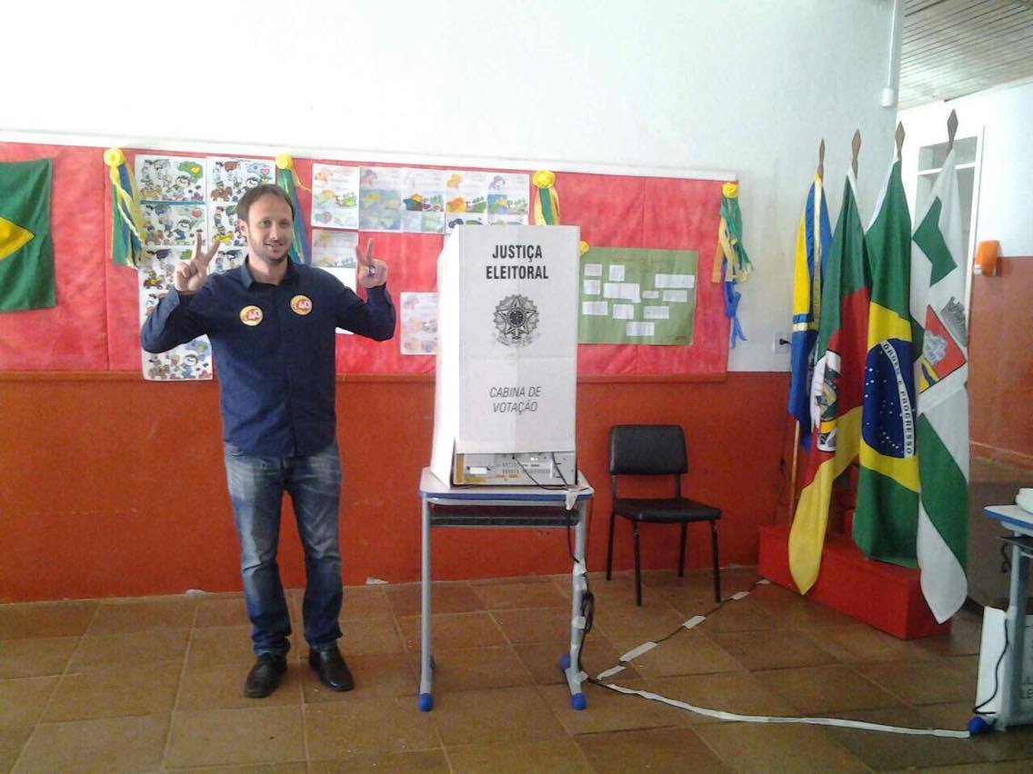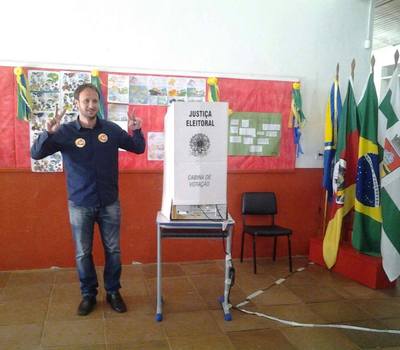 O candidato à prefeitura de Erechim, Flávio Tirello, acaba de votar na Escola Victor Issler. Ele chegou acompanhando da esposa Rafaela. Flávio afirma que a expectativa é a melhor possível. "A expectativa é grande, saímos hoje as ruas r percebemos que o povo está querendo a mudança, estou muito feliz, ansioso e animado" comenta o candidato.