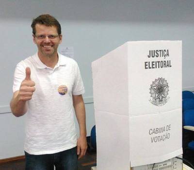 O atual vice-prefeito de Gaurama, que concorre à prefeitura do município, Leandro Puton (PDT), votou no Colégio Estadual Libano Alves de Oliveira. A expectativa é grande, já que o trabalho realizado durante os oito anos como vice resultou na melhoria da qualidade de vida dos munícipes.