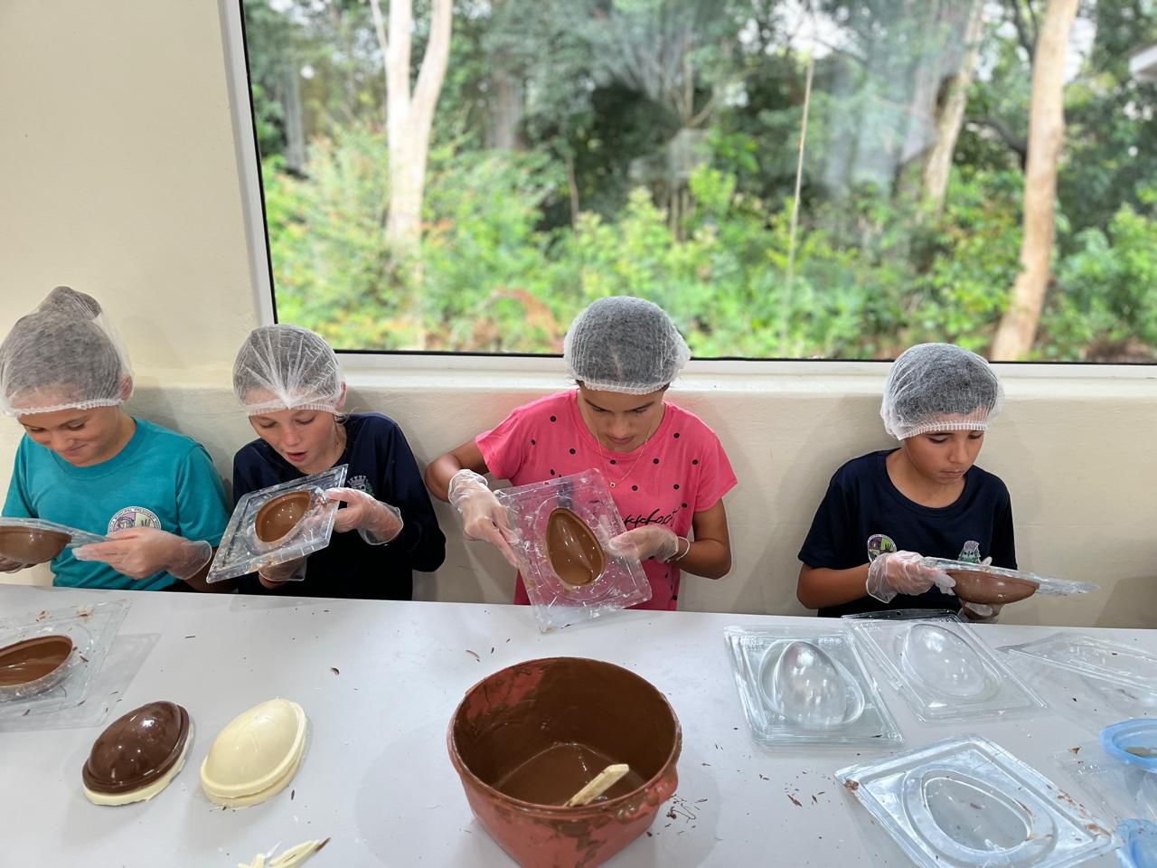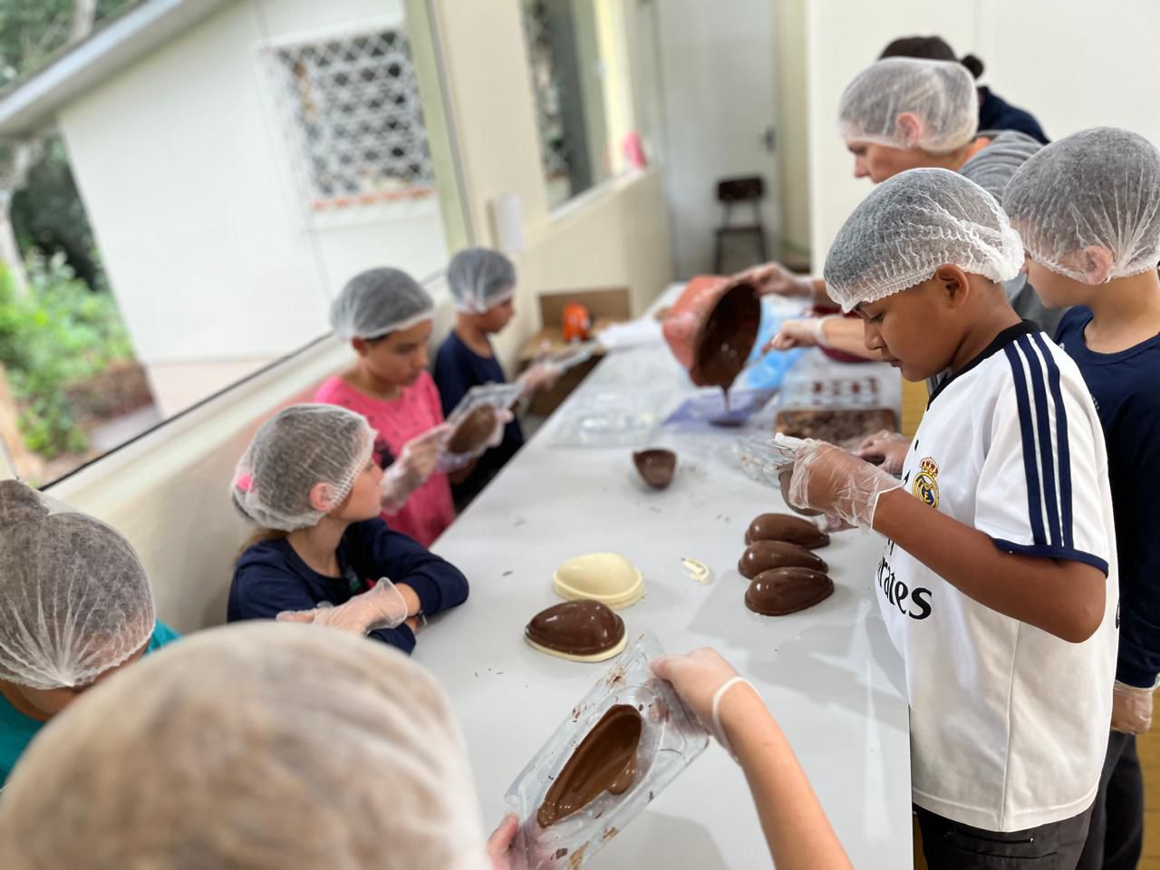 Durante a oficina, as crianças colocaram a mão na massa — literalmente — e aprenderam passo a passo como preparar ovos de Páscoa artesanais, desde o derretimento do chocolate até a decoração final. Com a orientação da equipe do CRAS e voluntários capacitados, os pequenos,não apenas desenvolveram habilidades manuais e culinárias, mas também puderam vivenciar o espírito da partilha e do trabalho em equipe.