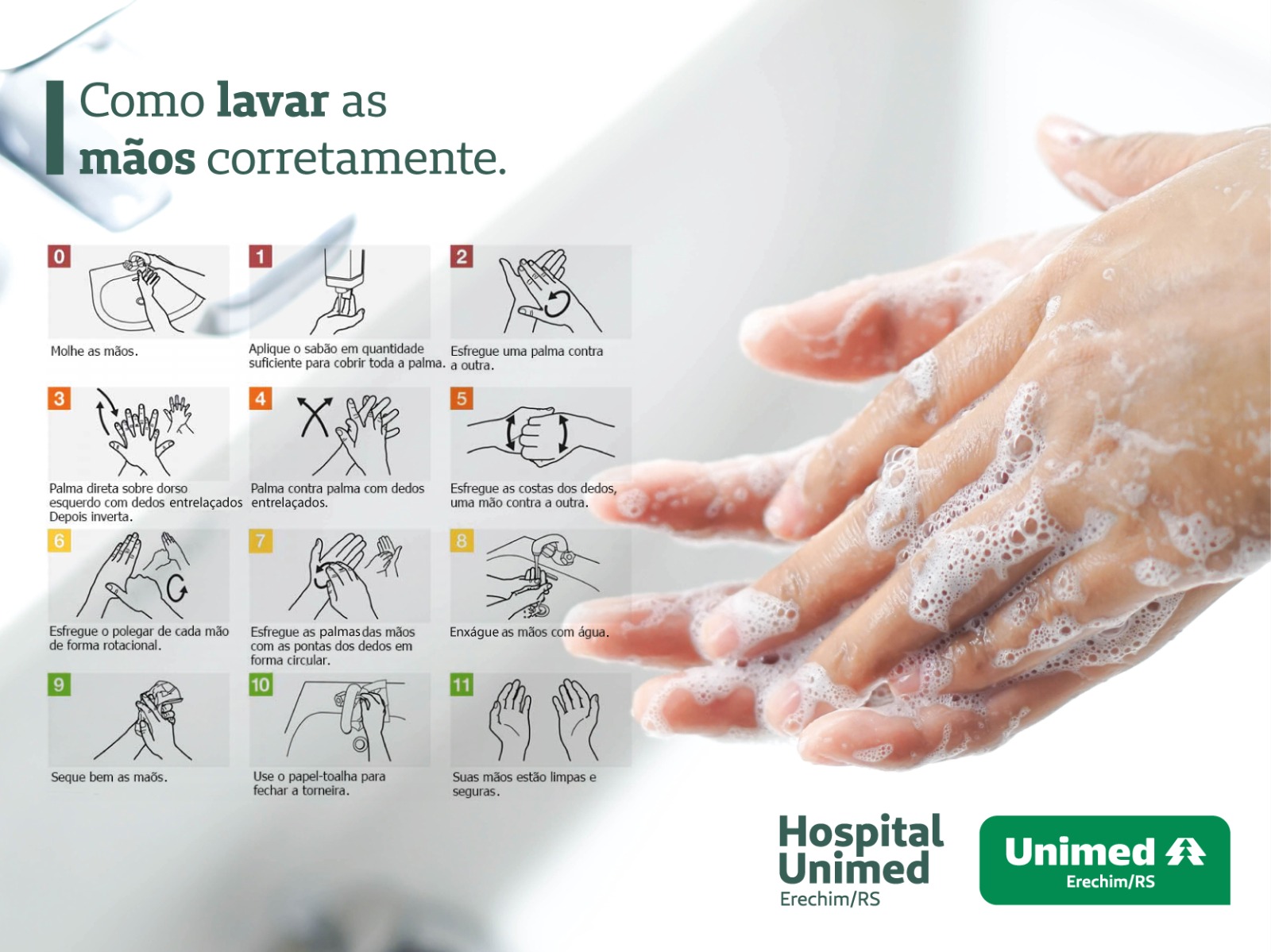 Higienizar corretamente as mãos: utilize água e sabão ou álcool 70%, e evite levar as mãos aos olhos, boca e nariz.