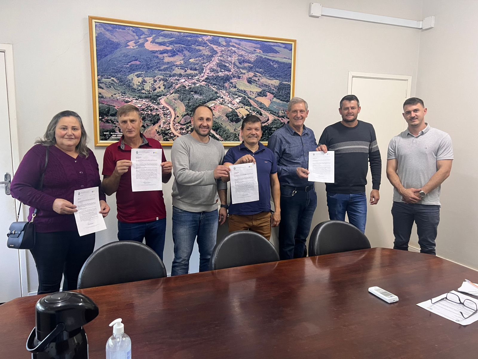 A entrega simbólica ocorreu no gabinete do prefeito Albertinho Dassoler e contou com a presença do vice-prefeito Rogério Franceschi, do presidente do PSD local, Sandro Copetti, além de demais lideranças do partido.
