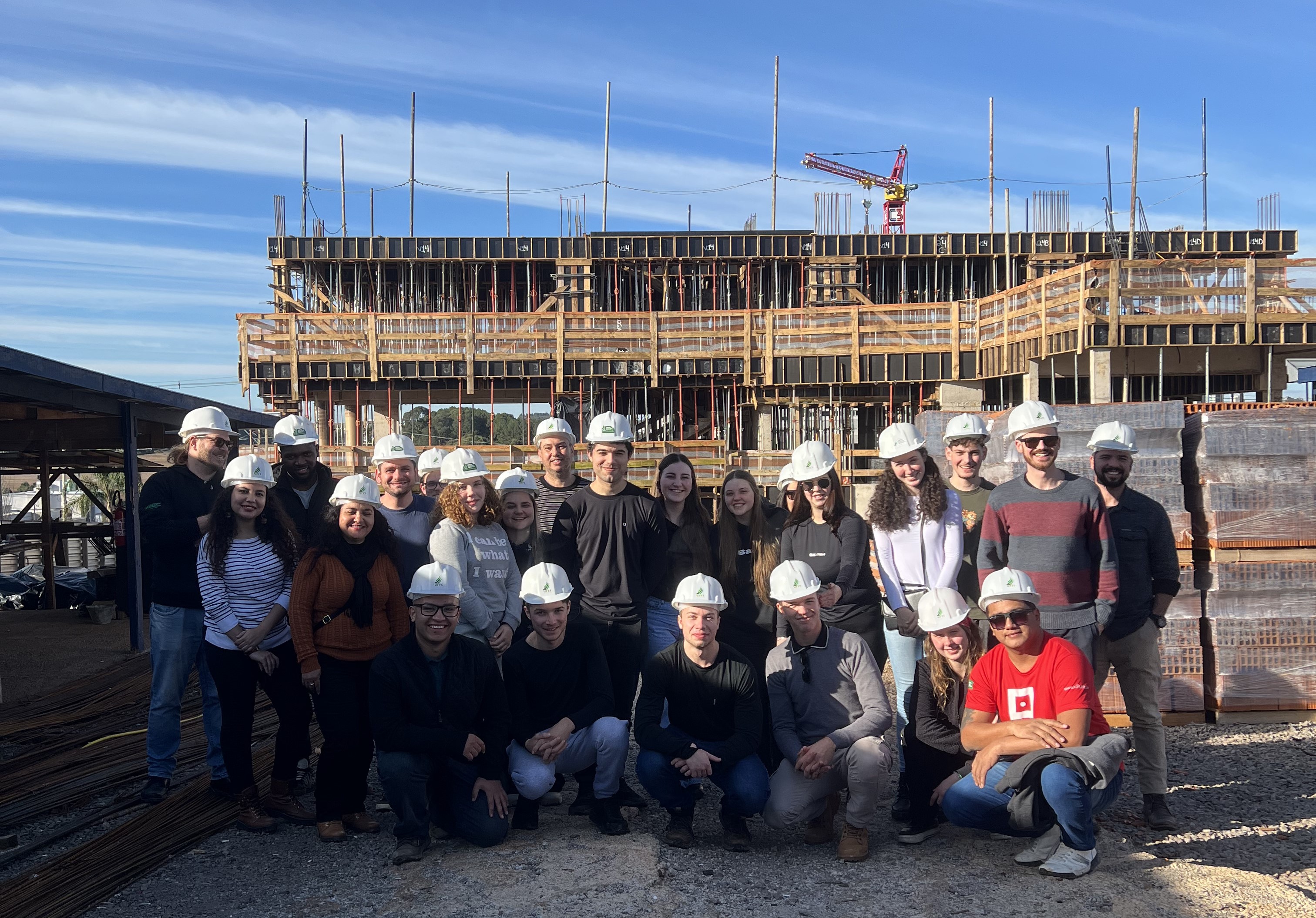 Durante a atividade, os acadêmicos puderam analisar diferentes fases do processo de construção, desde a fundação até a concretagem de lajes e a execução de alvenaria. A visita teve como foco principal a observação de aspectos relacionados à sustentabilidade nas construções e à gestão de resíduos sólidos.