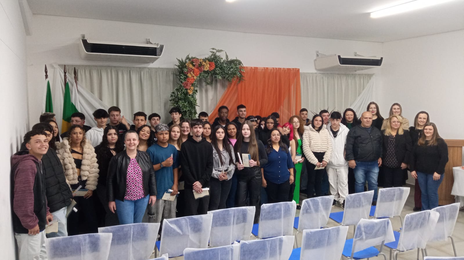 Representando os concluintes, a estudante Daniela Teresinha Ferreira agradeceu o apoio recebido e lembrou os desafios enfrentados ao longo da trajetória escolar. “Levaremos conosco não apenas um certificado, mas lembranças, amizades e a certeza de que nunca é tarde para seguir nossos sonhos”, declarou.