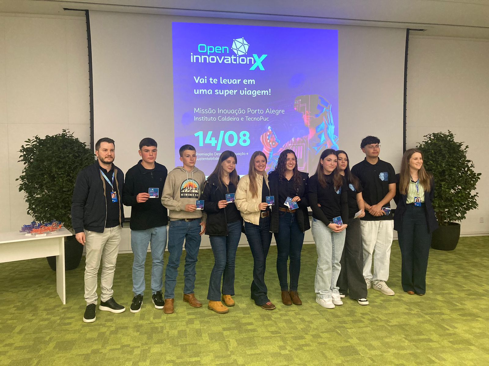 A quarta edição do Open Innovation X foi marcada por uma cerimônia de encerramento realizada no Espaço Cooperar da Sicredi UniEstados, em Erechim, com a presença de estudantes, professores, familiares, representantes de empresas e instituições parceiras. O evento, que nasceu em 2022, é uma iniciativa conjunta da URI Campus Erechim, Sicredi e Sebrae, e propõe a conexão entre jovens estudantes e empresas da região, com o objetivo de desenvolver soluções para desafios reais do mercado.