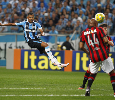 O Atlético chegou com Lucho González em cobrança de escanteio. Pablo apareceu livre na área para cabecear, mandando à direita do gol gremista.