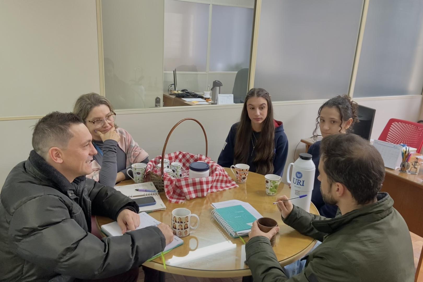 Em uma iniciativa que marca o início de uma gestão pautada pelo diálogo, o recém-empossado Grêmio Estudantil da Escola de Educação Básica da URI, gestão 2025/2026, realizou na manhã de quinta-feira, 07, a primeira edição do "Café com a Direção". O encontro reuniu a presidente do Grêmio, Eduarda Solenta Santin, e a vice-presidente, Antonella Barbieri, com o Diretor da Escola, Edenir Serafini, o vice-diretor, Alan José Bresolin, e a coordenadora do Ensino Médio, Viviane Forcellini Domingues.