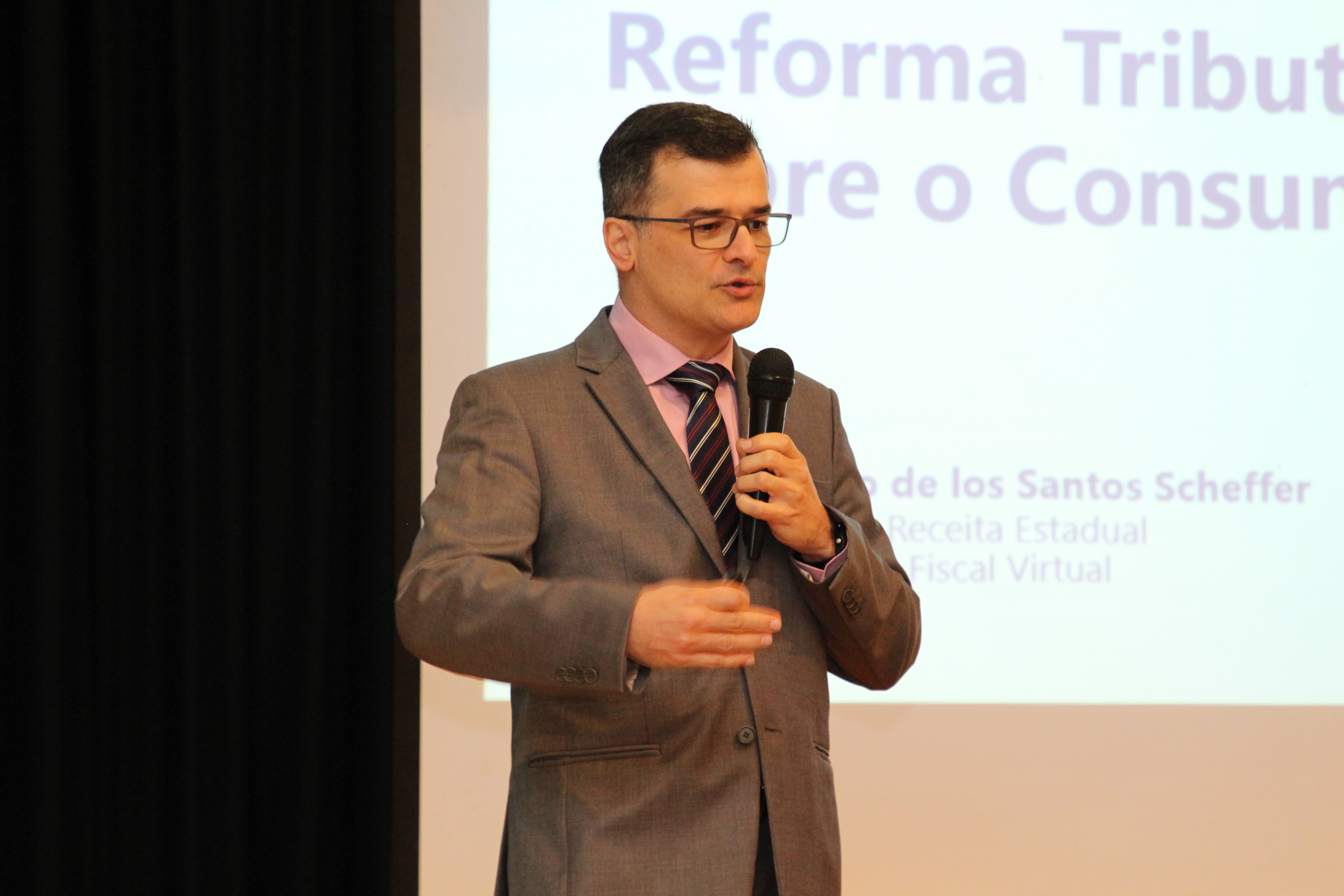 A palestra foi ministrada pelo auditor-fiscal Jean Francisco de los Santos Scheffer, da Receita Estadual do Rio Grande do Sul, que apresentou uma análise detalhada das mudanças previstas na reforma tributária, com foco nos impactos para empresas, profissionais da área contábil e a sociedade em geral.