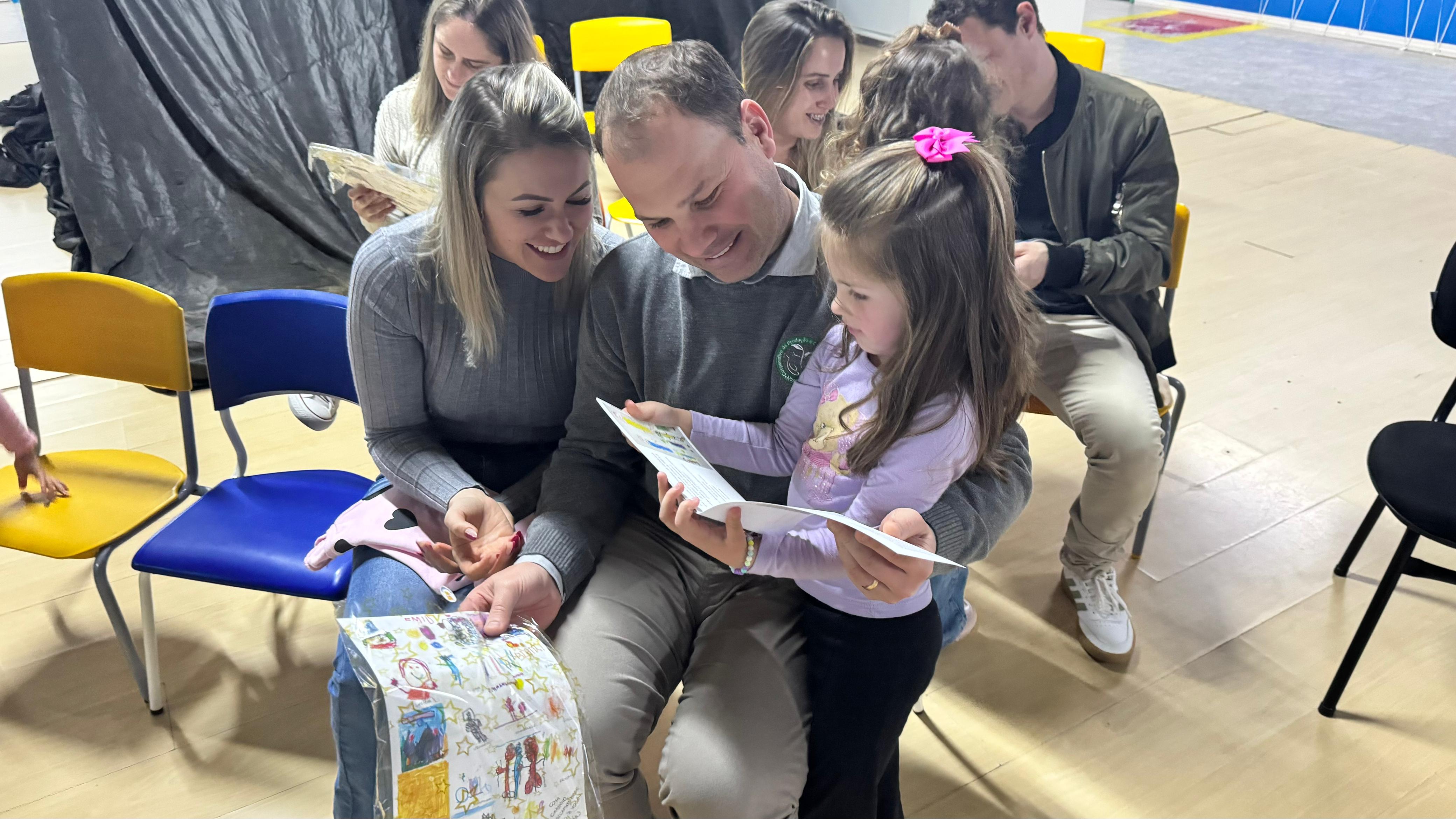 Entre os pequenos autores está Betina Arsego, de 5 anos. Os pais, Bernardo Arsego e Andressa Balsanello, participaram do lançamento e expressaram o orgulho e a emoção. “A gente acha extremamente importante e interessante, principalmente pela interação da família com o ambiente escolar. Estamos ansiosos, talvez até mais do que ela, pra ver e compartilhar essa emoção que ela passa pra nós em casa,” contou o pai.