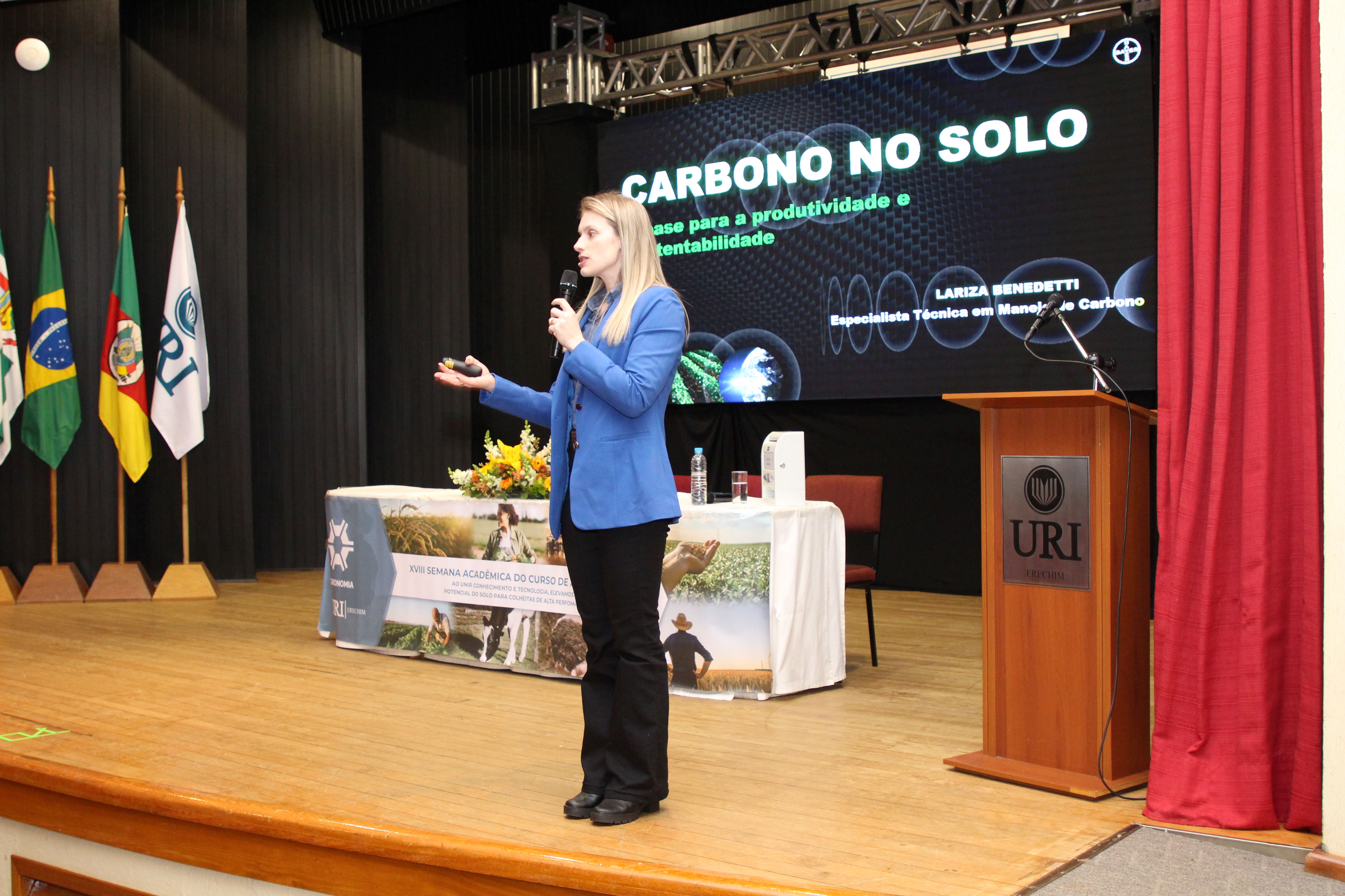 A apresentação discutiu o papel do carbono no equilíbrio climático e na fertilidade do solo, com foco em práticas que visam aumentar a fixação de carbono na agricultura. A palestra “Carbono no solo: a base para a produtividade e a sustentabilidade” foi ministrada pela engenheira agrônoma Lariza Benedetti.