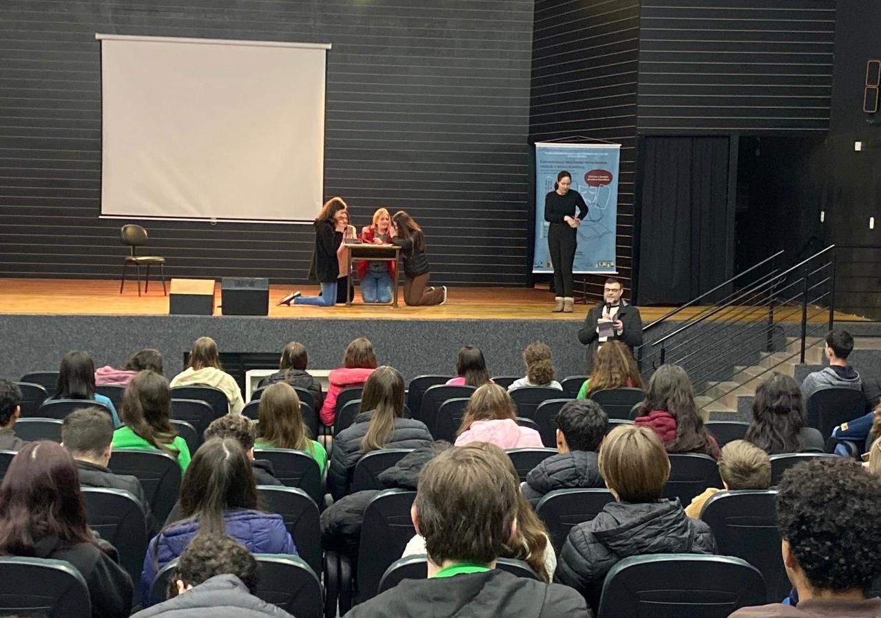 Assim como nas outras cidades, no encerramento da etapa foi realizada a leitura dramática de peças do livro de Bender, momento em que as atividades se ampliam para a comunidade escolar, tornando maior o alcance do projeto. As turmas a partir do sexto ano do Ensino Fundamental da escola parceira, bem como demais pessoas leitoras interessadas, tiveram a oportunidade de assistir a sessão, realizada no Cineteatro Cecília Zago Burin.