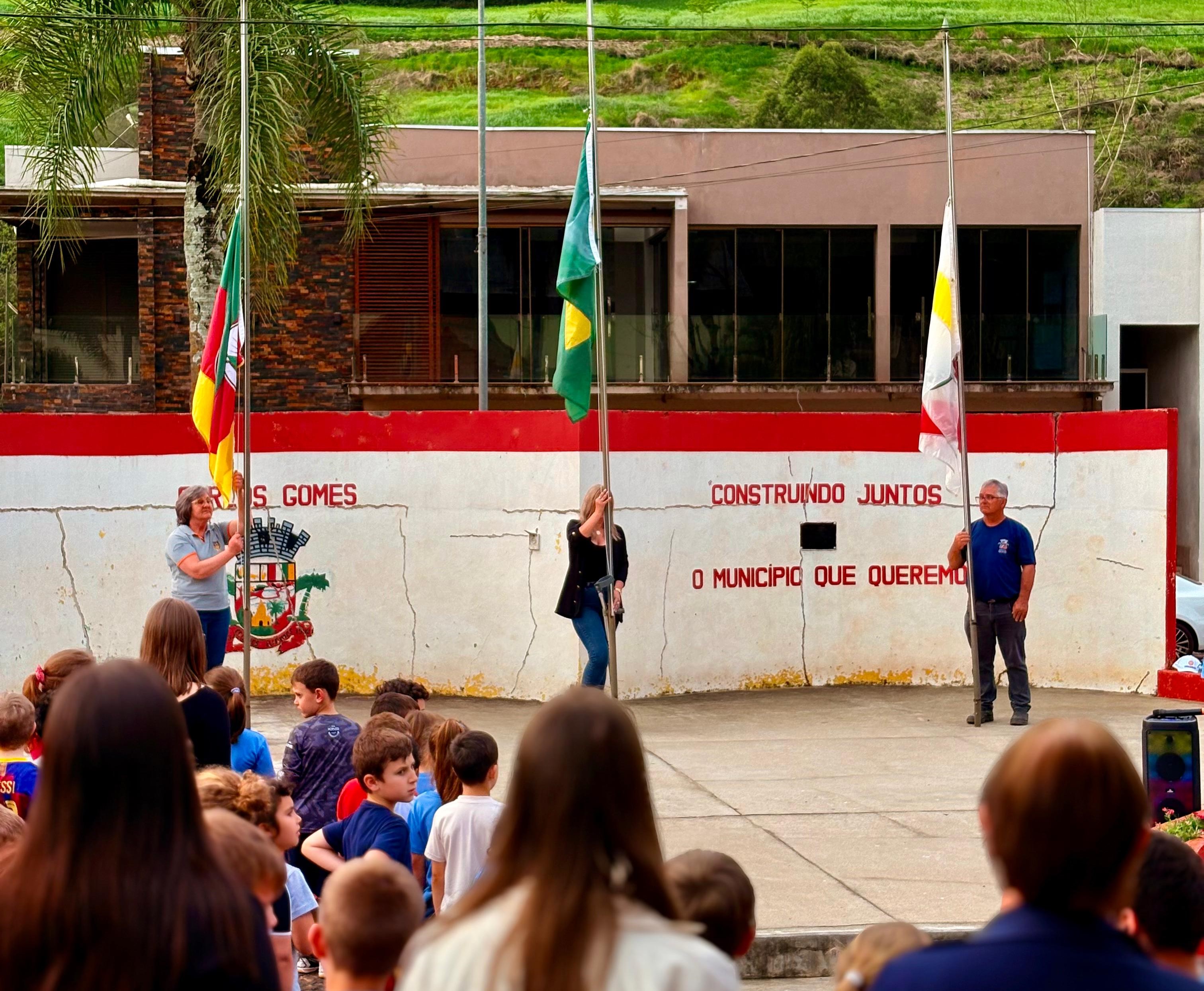 Teve início, na segunda-feira, 1º de setembro, a programação da Semana da Pátria em Carlos Gomes. A abertura contou com apresentações realizadas pela Escola Municipal de Ensino Fundamental Rui Barbosa, nos turnos da manhã e da tarde.