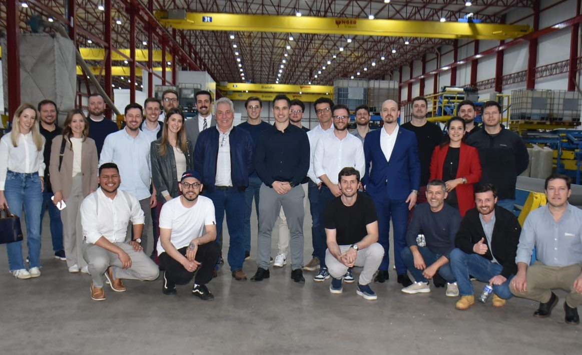 Os participantes foram recebidos pelo diretor executivo da Brastelha, Daniel Badalotti, responsável por conduzir a apresentação da empresa. A programação iniciou com um tour pelos dois pavilhões industriais, que abrigam desde a estocagem de matéria-prima até a linha de produção de painéis e telhas metálicas.