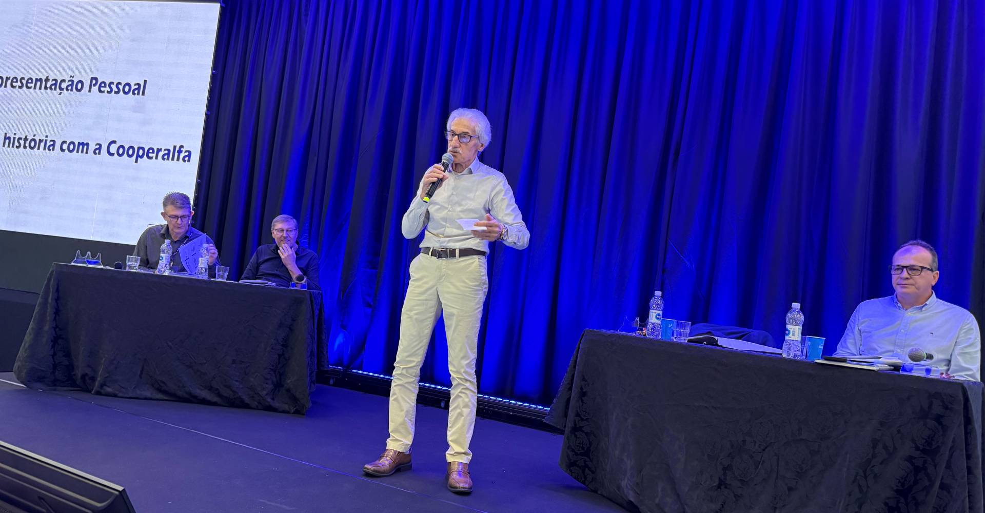 O presidente da Cooperalfa, Romeo Bet, emocionou os participantes ao contar sua trajetória desde que foi convidado por Aury Bodanese para ingressar no Conselho de Administração. Ele destacou os valores que o guiaram: “Cada um precisa deixar o seu legado, e o meu foi construído pelas oportunidades, valores e pelas pessoas que me ajudaram”.