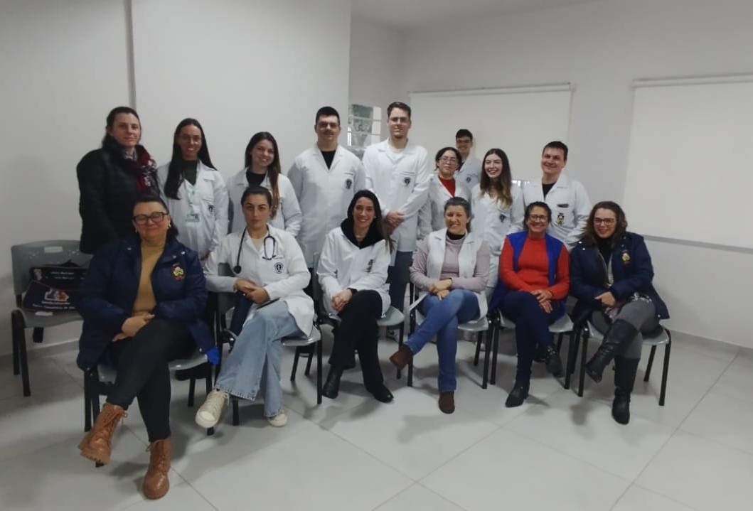 Estudantes do 3º semestre do Curso de Medicina da URI (turma 2024) participaram de uma ação educativa integrando os componentes curriculares de Microbiologia, Parasitologia e Imersão SUS. Sob orientação da professora Geciane Toniazzo Backes, os acadêmicos Ana Rita Facchi, Débora Fontenele, Giane Demoliner, Karoline Galiazzi, Lucas Felipetto, Nicoly Bresolin e Silvano Steinmetz realizaram uma atividade voltada aos profissionais da Unidade Básica de Saúde Atlântico, como parte da curricularização da extensão.